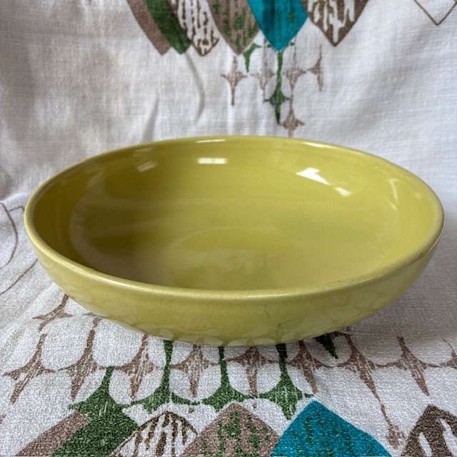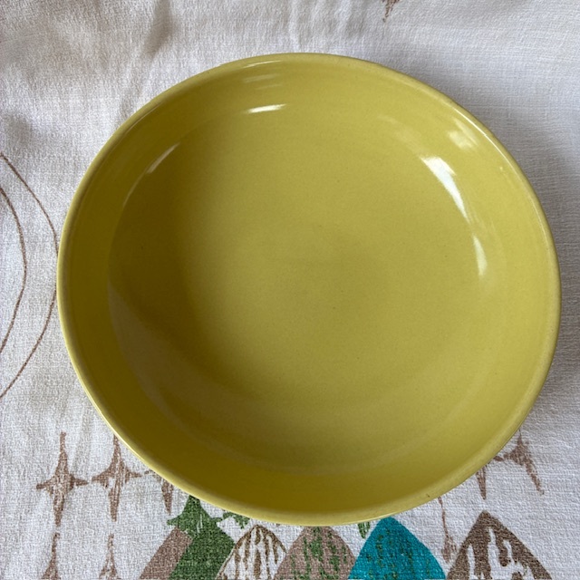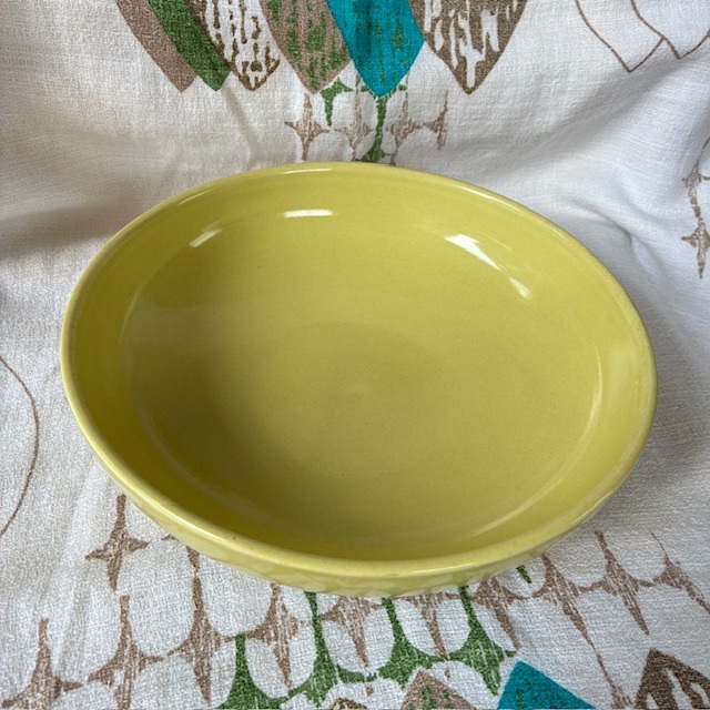 アメリカで買い付けました1950〜60年代頃のラッセルライト社の磁器ボウル皿です。 やや重みのある作りです。 裏には会社の刻印が入ってます。 欠けやひびなどなく程度は良好で普段使いには問題ありません。 サイズは直径約20cm、高さ約5.5cmです。古い品のため、USED品やビンテージ品にご理解ある方よろしくお願いします。
