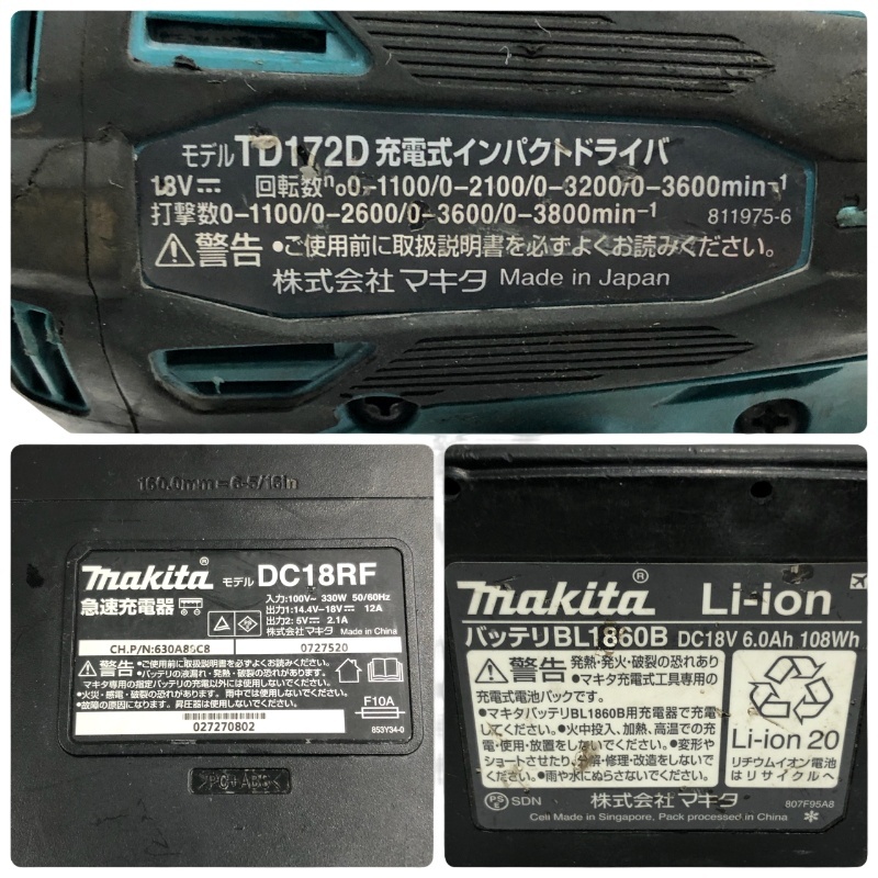 | 付属品 | 本体、バッテリBL1860B×1、充電器DC18RF ※ビット、ケースの付属はございません※ |