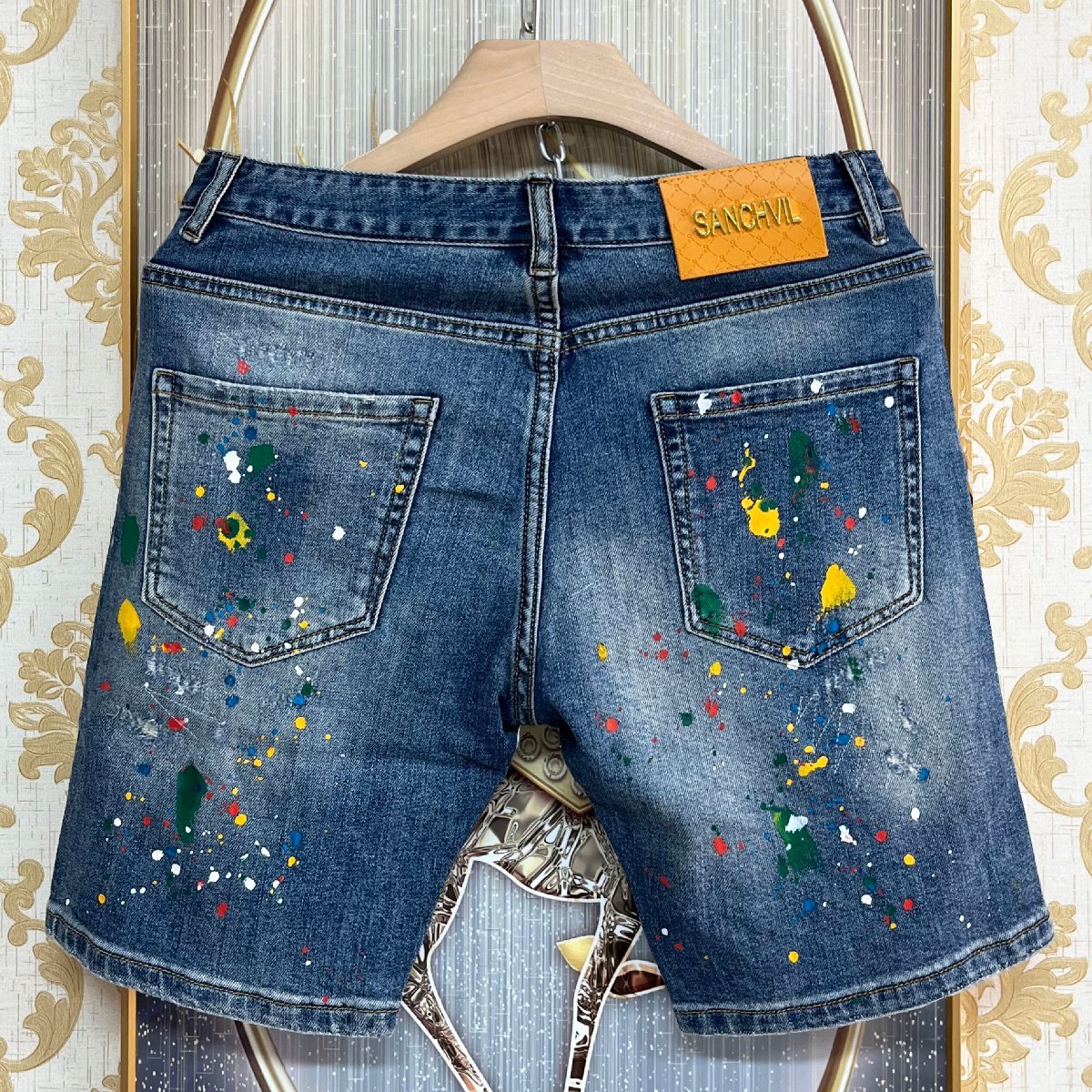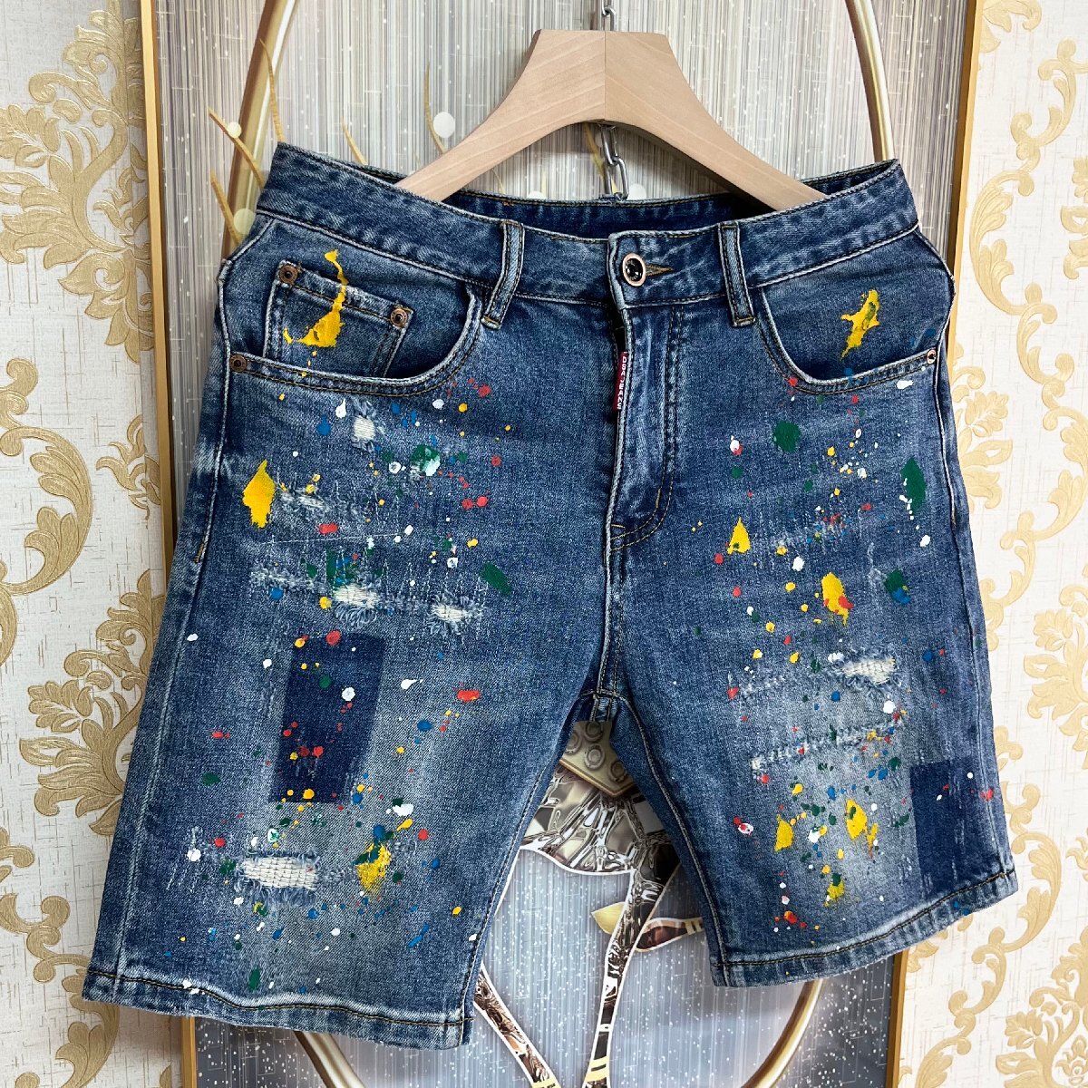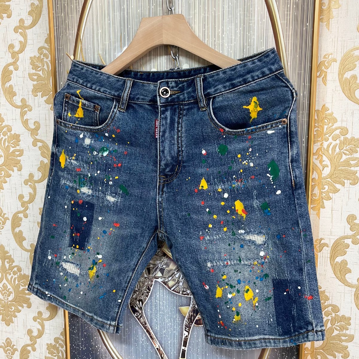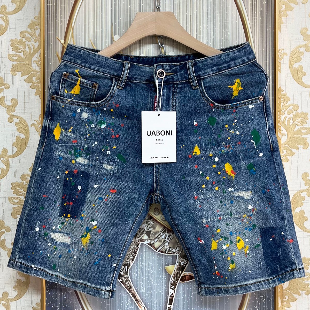 個性EU製&定価3万◆UABONI*Paris*ショートパンツ*ユアボニ*パリ発◆コットン混 通気 デニム 短パン スプラッシュ ストリート 遊び心 夏 サイズ32