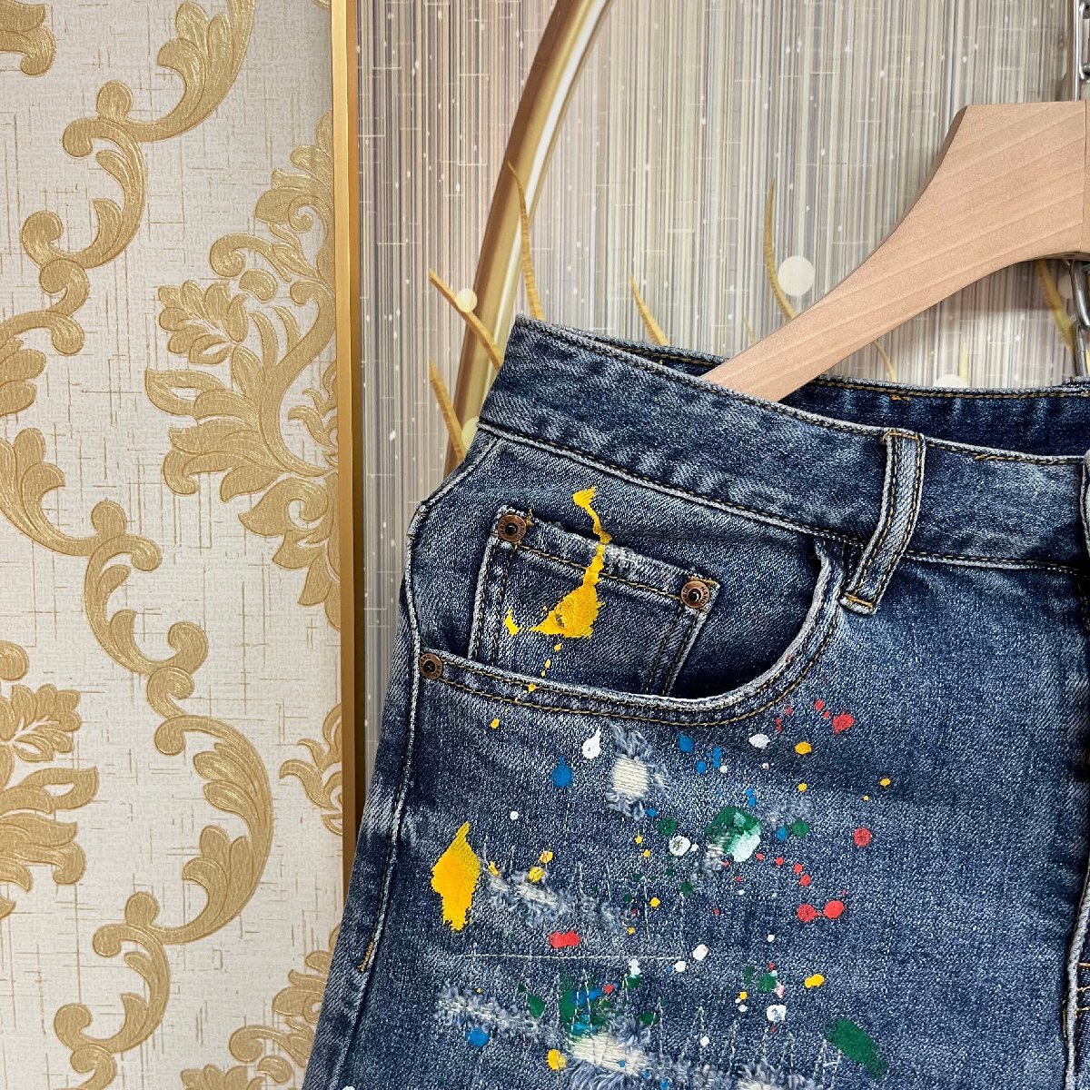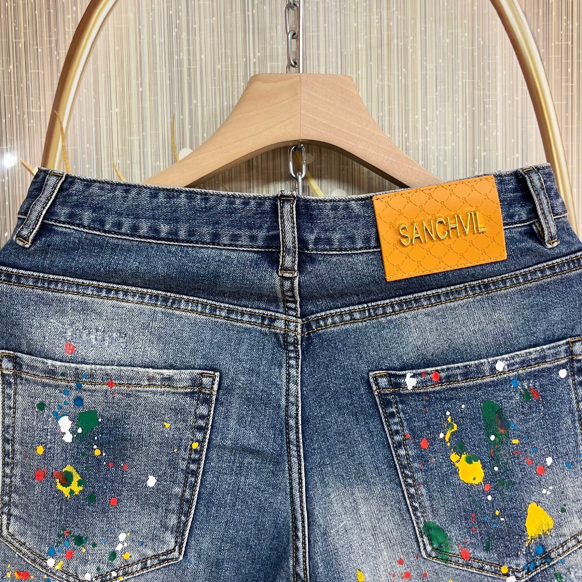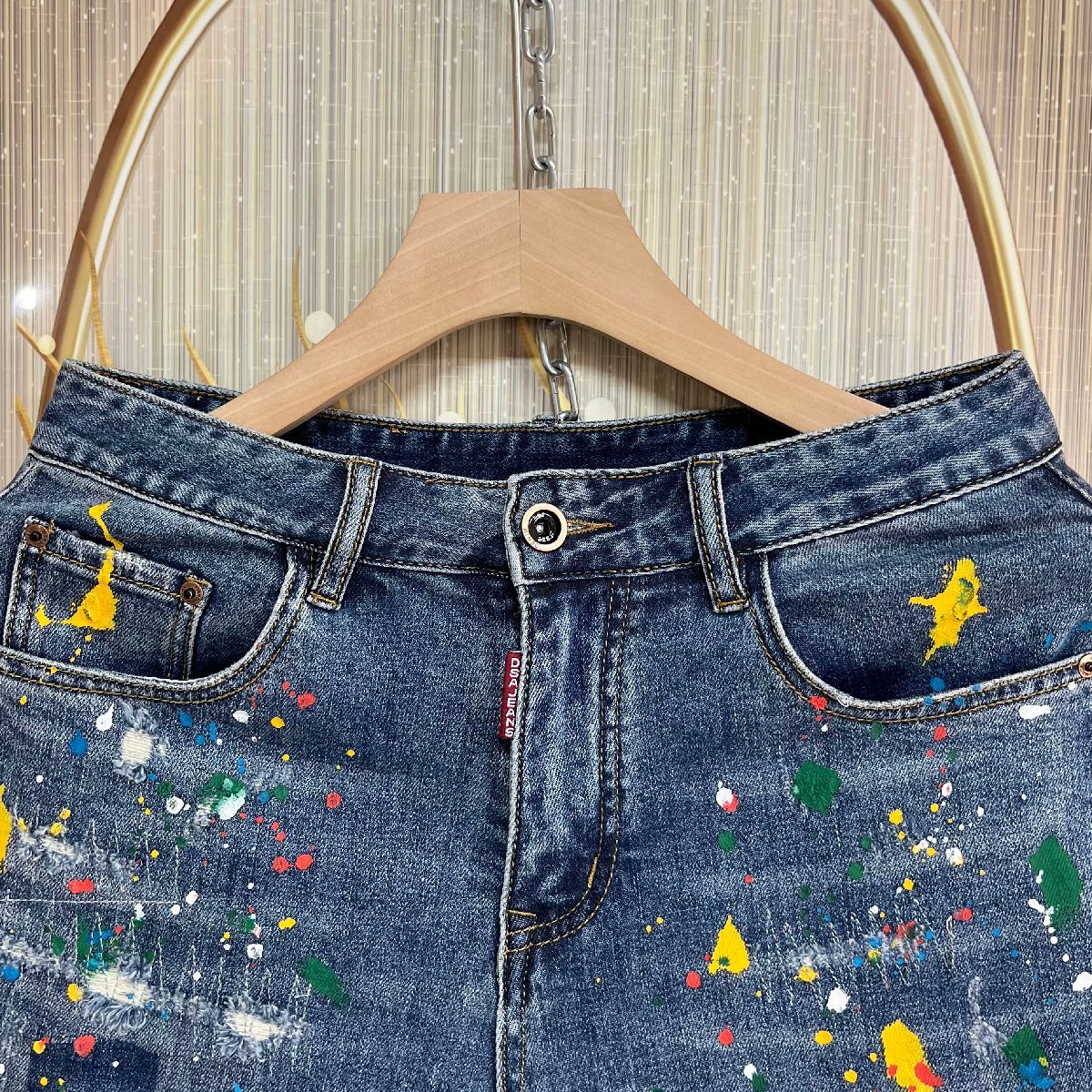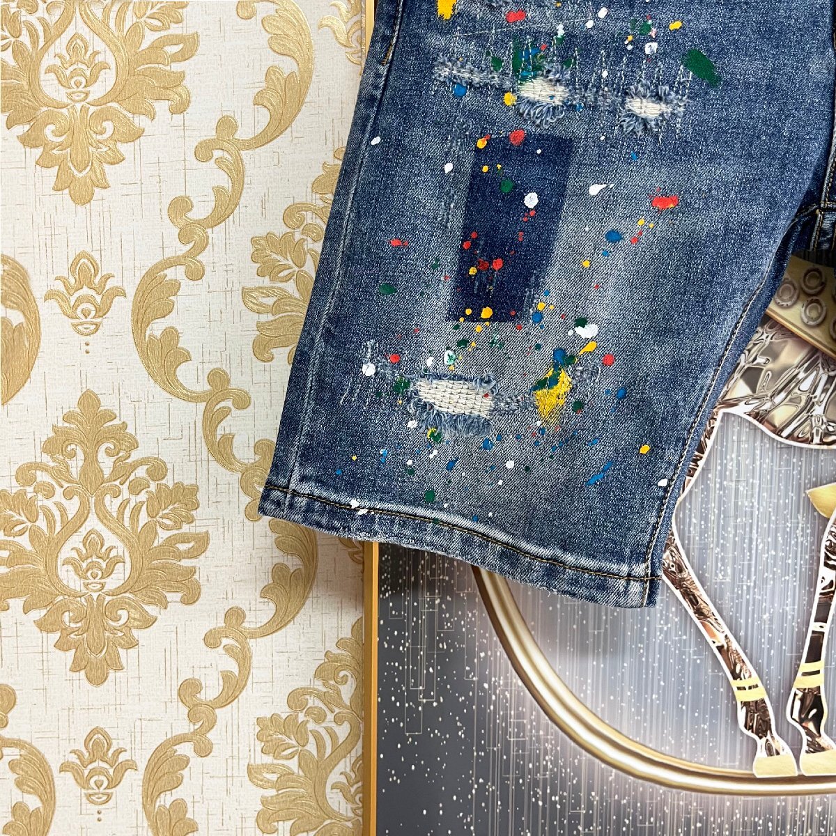個性EU製&定価3万◆UABONI*Paris*ショートパンツ*ユアボニ*パリ発◆コットン混 通気 デニム 短パン スプラッシュ ストリート 遊び心 夏 サイズ32