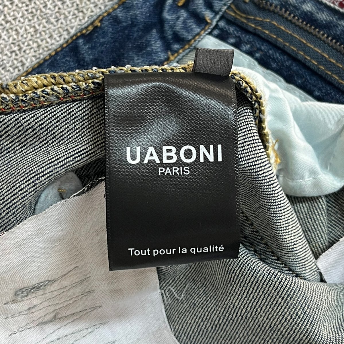 個性EU製&定価3万◆UABONI*Paris*ショートパンツ*ユアボニ*パリ発◆コットン混 デニム 短パン スプラッシュ ストリート 遊び心 サイズ32