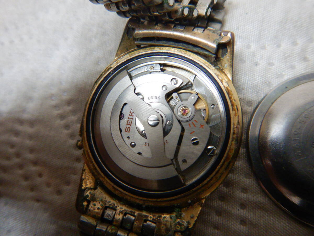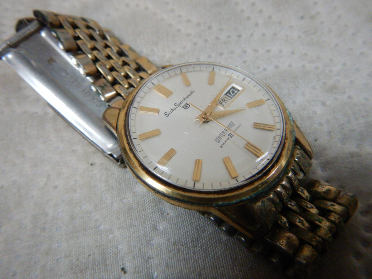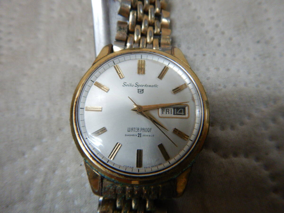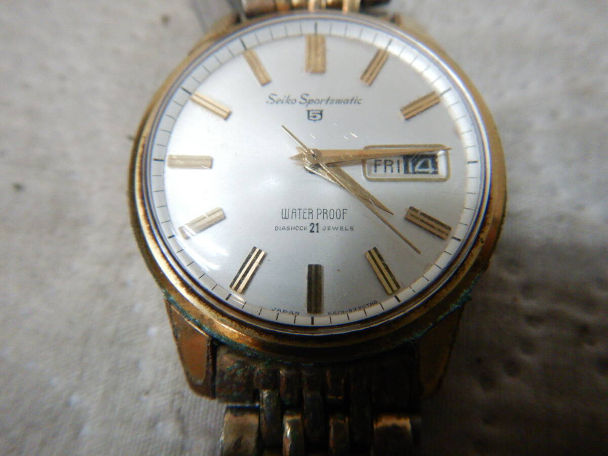 SEIKO 5 SPORTSMATIC 21JEWELS 6119-8970 セイコー 腕時計 ケース幅36mm 縦42mm リューズ欠品 現状動いています。 外観はケース下の方サビが見られます。 基本出てきたまま少しチェックして出品してますので掃除もしていません。発送はレターパック600円