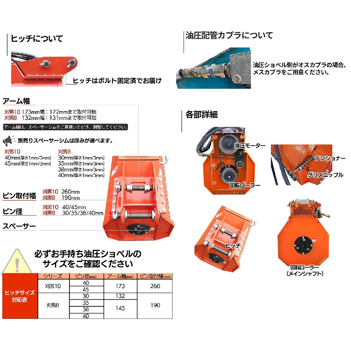 ・製造時、輸送時等に付く、キズ、凹み、汚れがございますが、交換等の対象外となります。 ・製造後に実働テストを行っておりますので、作動油が残っている場合がございます。 ・操作方法の誤り・輸送中の破損につきましては、保証対象外となります。 ・ブレードの破損は保証期間であっても保証対象とはなりません。 ・本製品の刈取能力や、動作速度など公称数値の相違による保証はしておりません。 ・メンテナンス不足によるの故障(破損)は保証対象外となります。 ・作動油の確認や適性時期の交換を怠った状態などは、保証対象外となります。 ・本製品の故障または使用による事故、損害(経済的損失含む)や油圧ショベル本体側の破損については、当社はその責を一切負わないものとします。 |