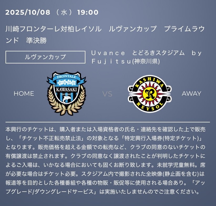 川崎フロンターレ対柏レイソル ルヴァンカップ プライムラウンド 準決勝 JリーグYBCルヴァンカップ ホームA自由ペア