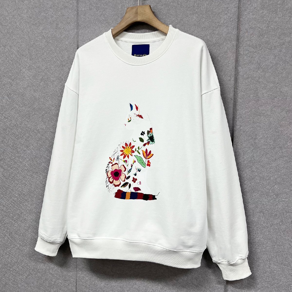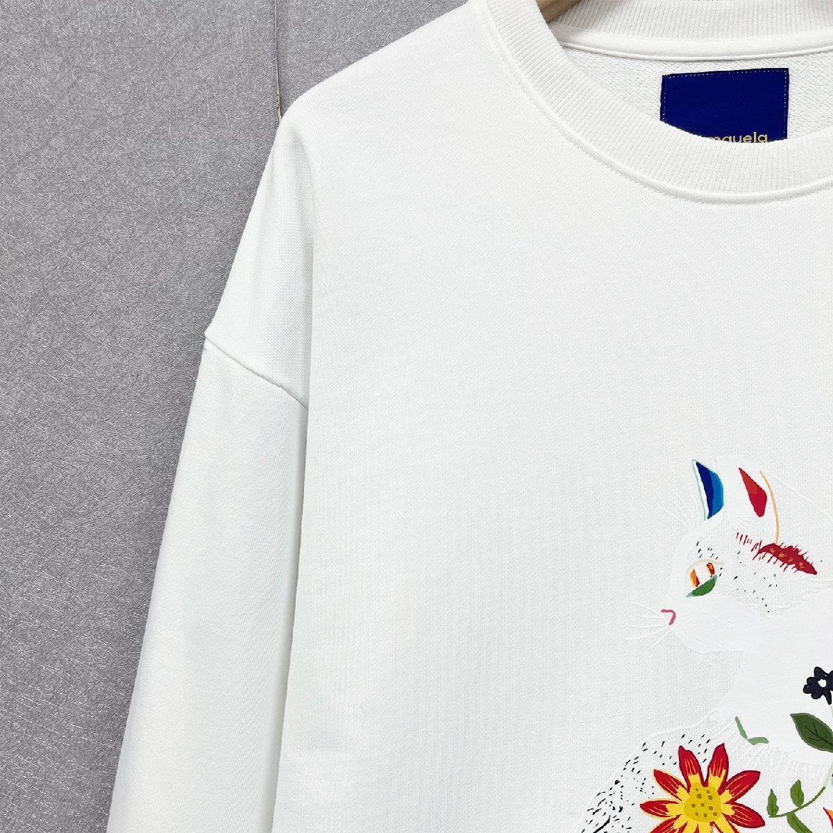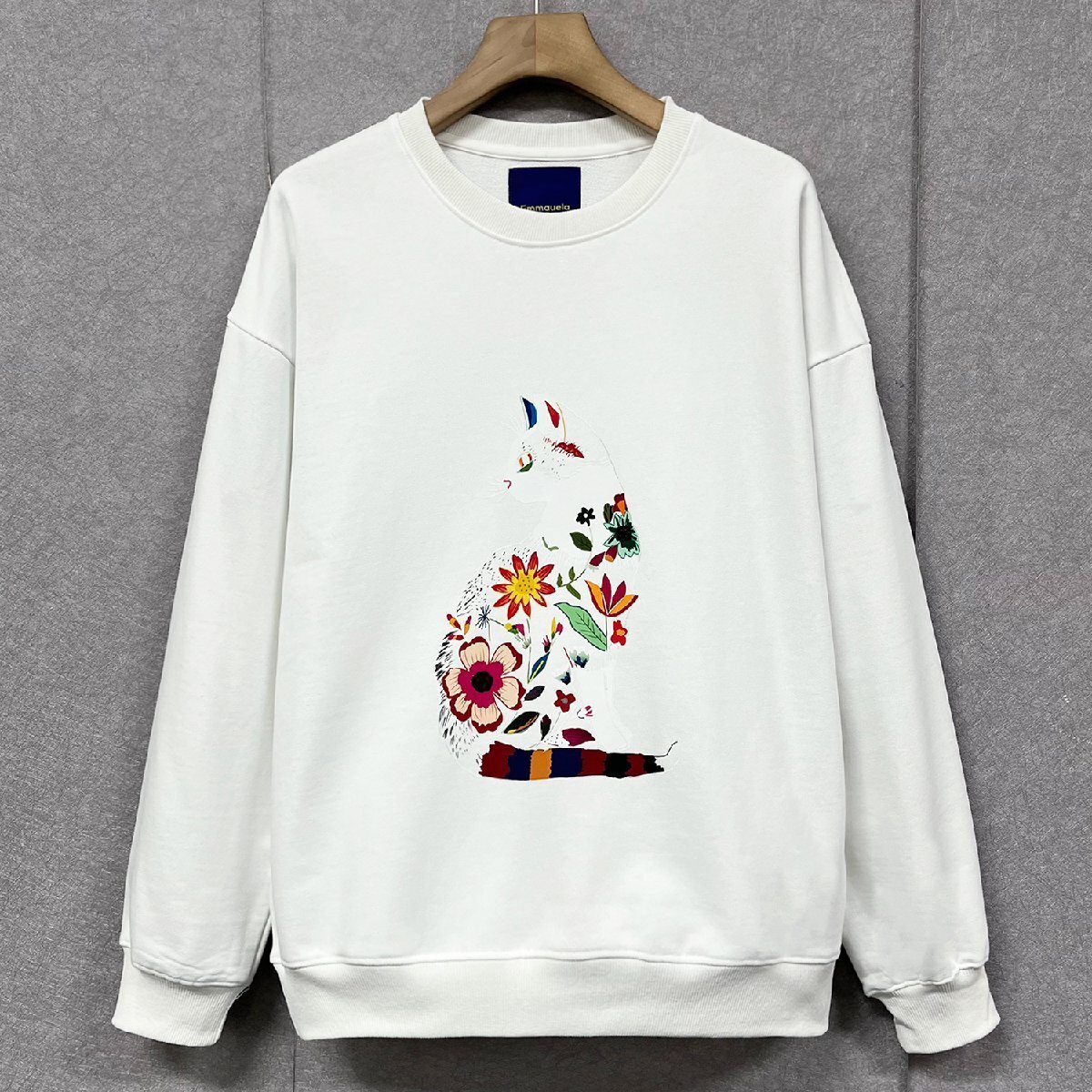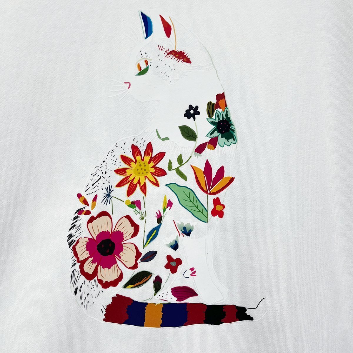高級・トレーナー 定価4万◆Emmauela・イタリア・ミラノ発◆綿100% 快適 保温 ネコ 花柄 プルオーバー スウェット 街着 男女兼用 M/46サイズ