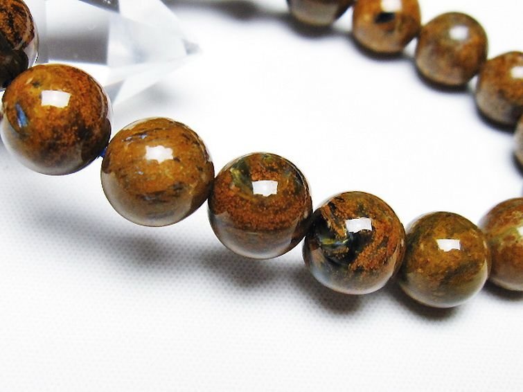 | ■商品名: ピーターサイト ブレスレット ■商品ID: T37-6939 ■商品重量:約 27.8g ■商品サイズ:内周約:156mm(±5mm)粒直径約:10mm(±0.5mm) 【ピーターサイト】 ピーターサイトは、1962年に発見された比較的新しい鉱物です。 一見してタイガーアイに見える事もありますが、事実、ピーターサイトはタイガーアイの仲間なので、あなたの直感は間違いではありません。 知名度がそこまで高くないピーターサイトですが、希少性は群を抜きます。 あなたが現物を見たら、あまりの不思議な美しさに一瞬で虜になってしまうでしょう。 ピーターサイトにはブルー、レッド、ブラウン、イエローなどの色味が見られます。 それらの色味が相まって油絵の様な不思議な模様を描きます。 ピーターサイトにはキャッツアイ効果が見られる事も多く、眩い輝きの奥に広がるマーブル状の油絵を一目見れば、ピーターサイトの魅力に一瞬で魅せられてしまいます。 また、光源によって色々な表情を見せる特徴にも心を動かされます。 ピーターサイトのその独特な色味と模様は、ピーターサイトでしか見る事ができません。 希少ゆえにどうしても高値で取引される為、見つけた時には迷わずに手に入れた方が後悔せずに済む事を忘れないで下さい。 ピーターサイトは、自分自身を見直す機会を与えてくれる石といわれます。 客観的に自身を見つめ、また勇気を与え、明るい未来に向かう力をコントロールし行動力を育みます。 その秘めたるエネルギーとパワーは強く、別名「テンペスト・ストーン(嵐の石)」とも呼ばれています。 ◆ワンポイント情報 ピーターサイトは水分にあまり強くありません。 アクセサリーとして着用される場合には、定期的に汗や汚れを拭き取るなど、お取り扱いにご注意下さい。 |