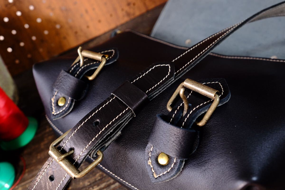 | * * * 作品詳細 * * * 上辺約・・32cm 高さ約・・20cm 幅約・・ 12cm 裏地・・綿 ショルダーベルト・・約80cm前後 糸・・8番太糸 当方が丁寧に一点もののバッグとして心を込めて製作しました。 ブラックシュリンク牛革を中心に使用し、永くお使いいただけるシンプルでクラシカルなデザインに仕立てましたメッセンジャーバッグです。(留め具が不安定な為フラップ止めにコツがいります) 此方のほかにも沢山出品中ですのでご自分だけのレザーアイテムをお探し下さい。 ★★別途オーダーもお受けいたしておりますのでお気軽にご相談ください。 先着順になりますのでタイミングによりお断りしたりお時間を頂く場合もございますが yamasenkawasen@yahoo.co.jp までご質問下さいませ。 |