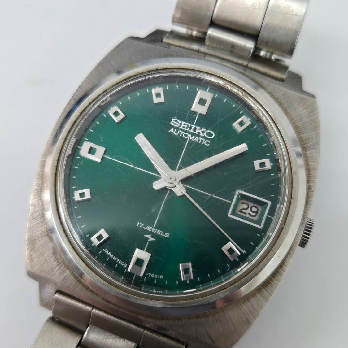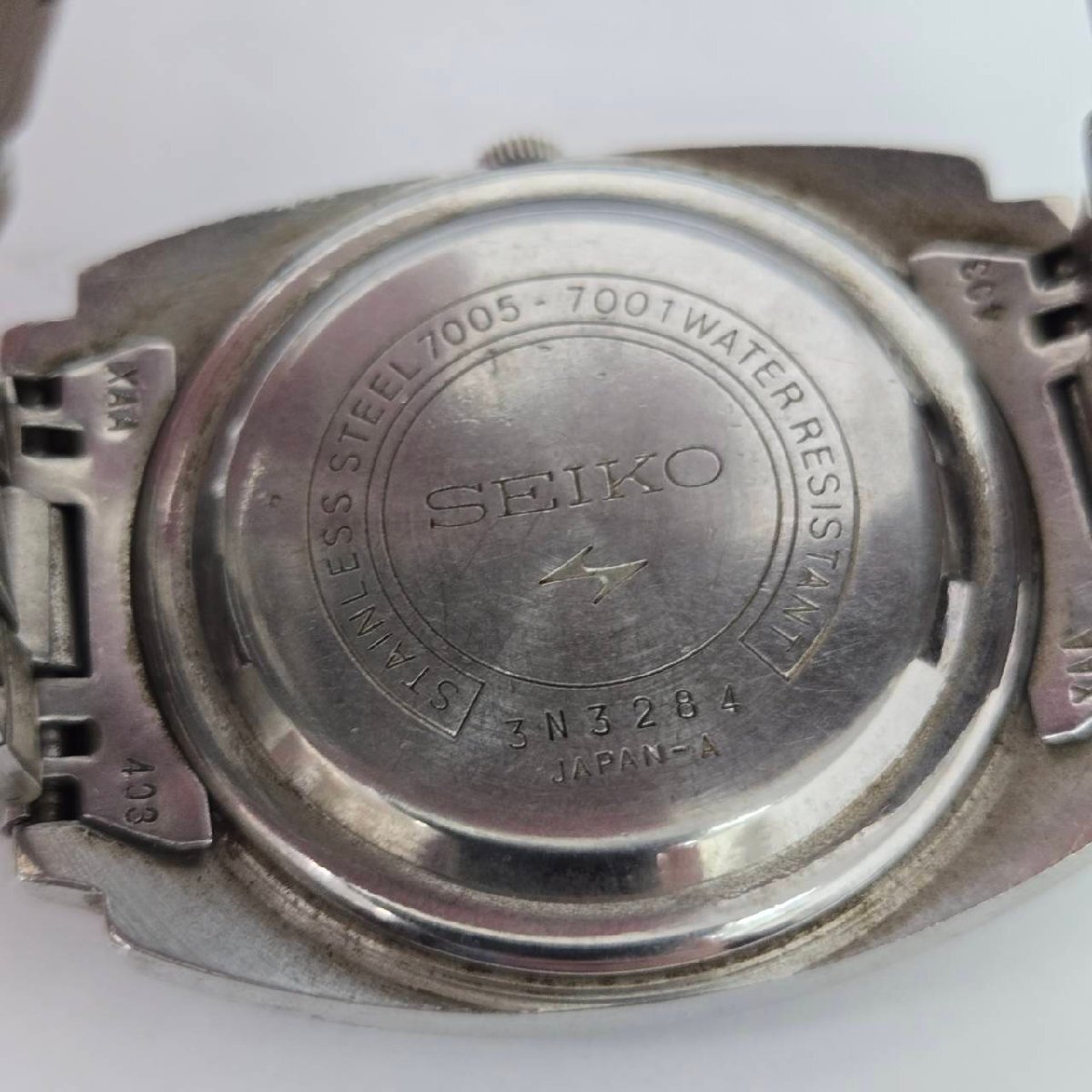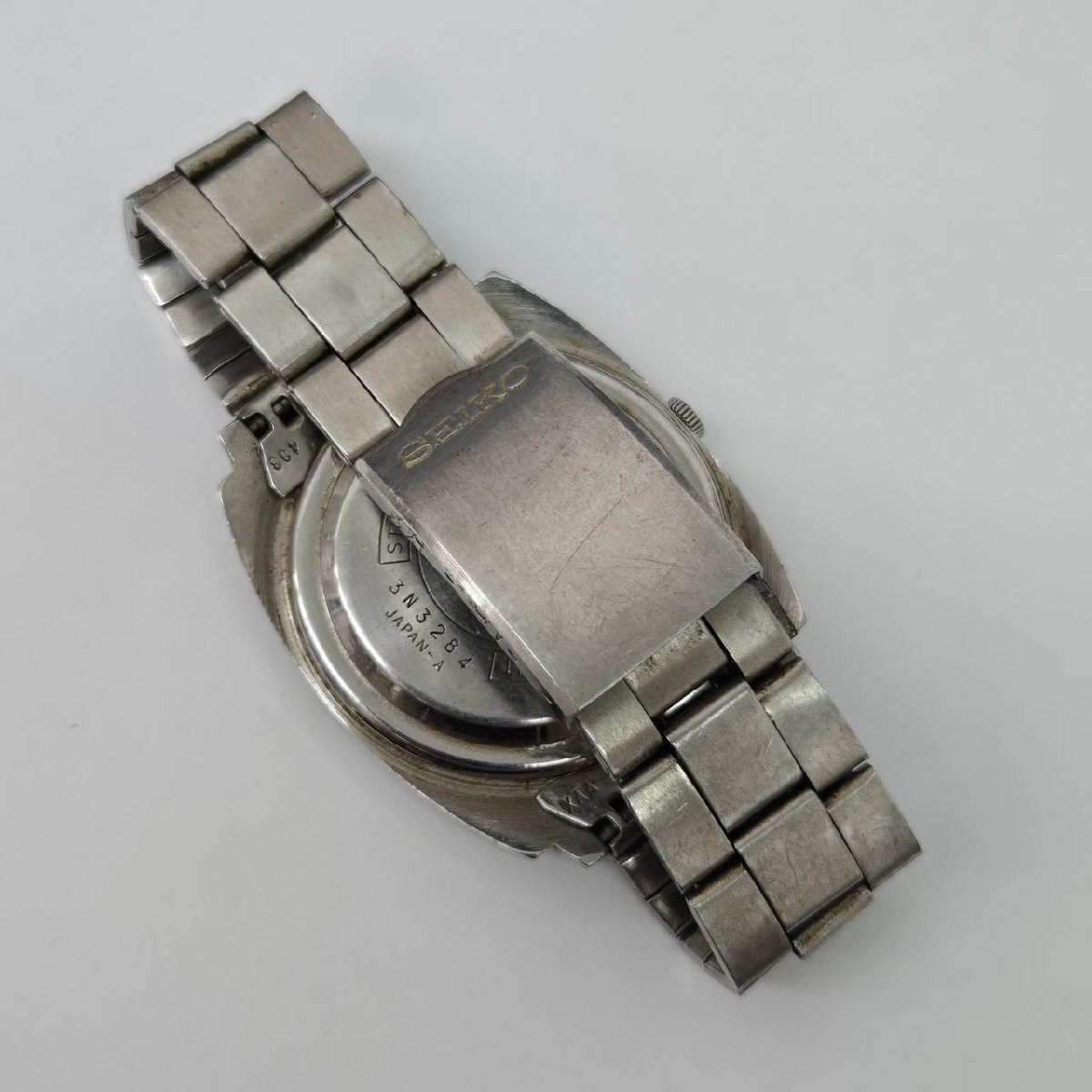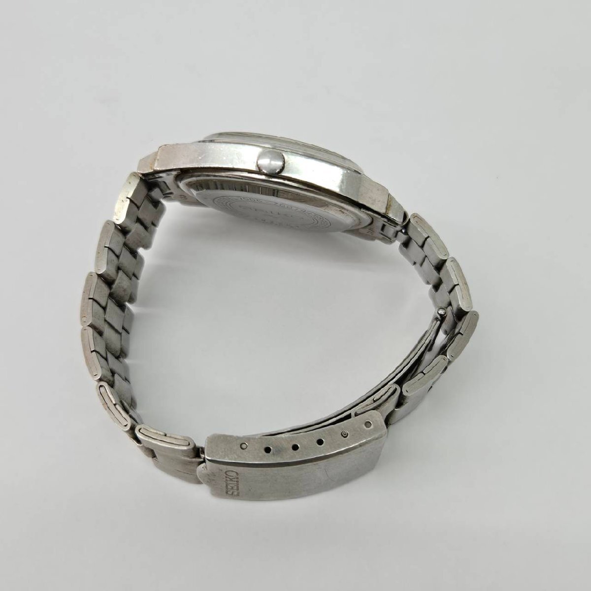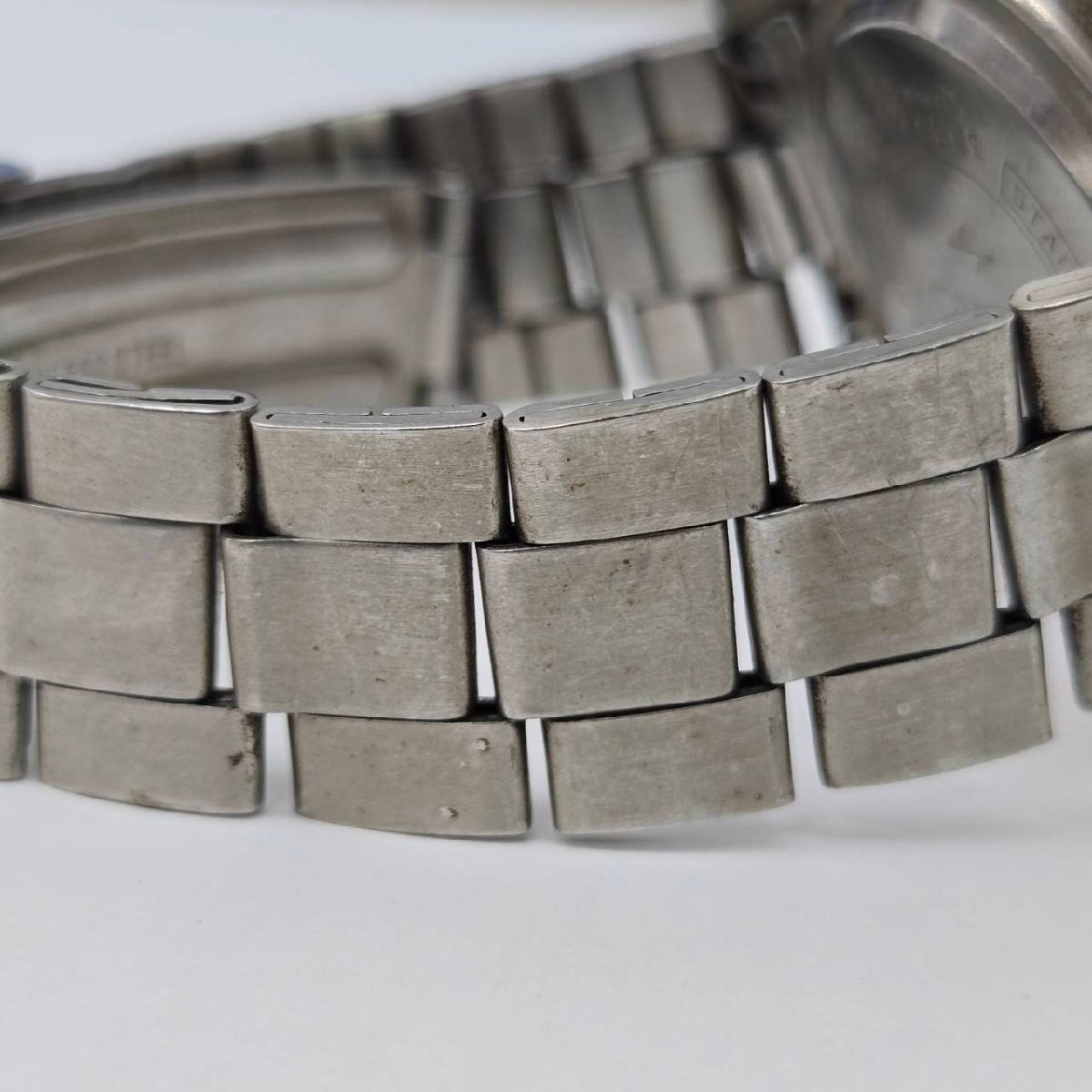 傷や汚れ、錆など劣化やダメージがございます。 ベルト留め具部分かたくなっており開きません。 動作はしますが止まるなど動作不良がございます。 ご理解の上ご入札お願いいたします。 腕周り 約16cm 〇状態について〇 ・こちらの商品は中古品の為、ご理解頂ける方のご入札をお願いいたします。 ・状態など分かる範囲で記載しておりますが、専門的な事に関しては分かりかねます。 ・中古品になりますので、完品をお求めの方はご遠慮ください。 ・落札後の質問やキャンセルがないように、気になる箇所がある場合はご入札前に必ずご質問ください。 ・画像に写っているものが全てになります。 ・状態につきましては、画像を良くご覧ください。 |