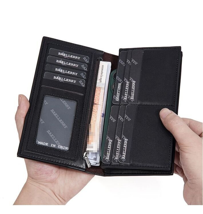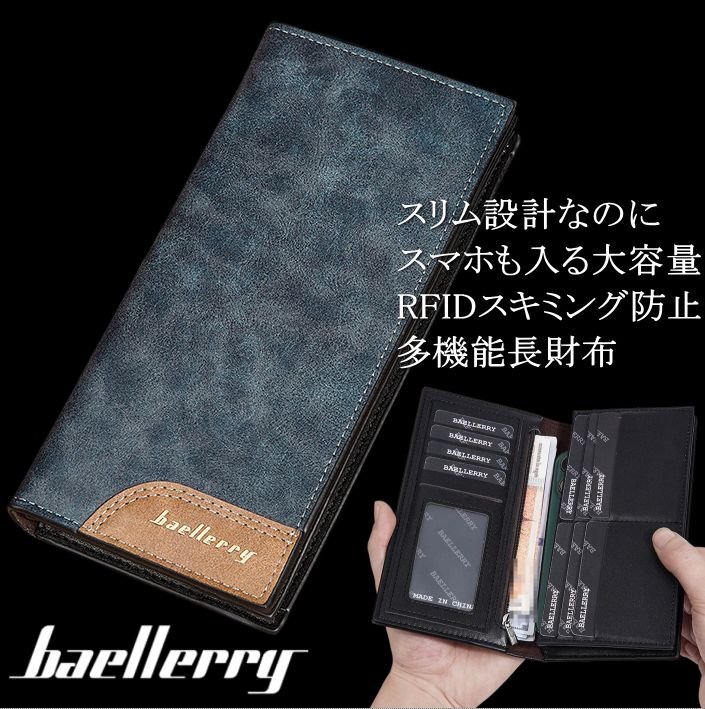 スリム設計なのにスマホも入る大容量。RFIDスキミング防止・多機能長財布。