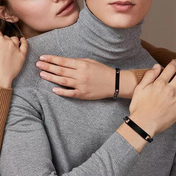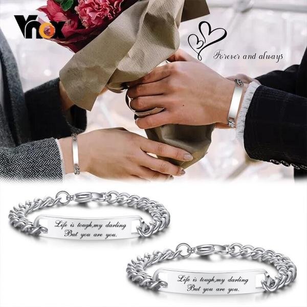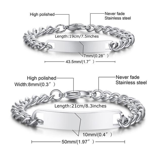愛情 無料オリジナル刻印 ブレスレット カップル ポリッシュ ステンレス バングル キューバ チェーン メンズ スペシャル ギフト