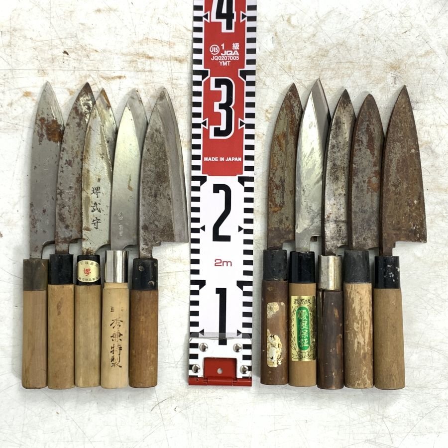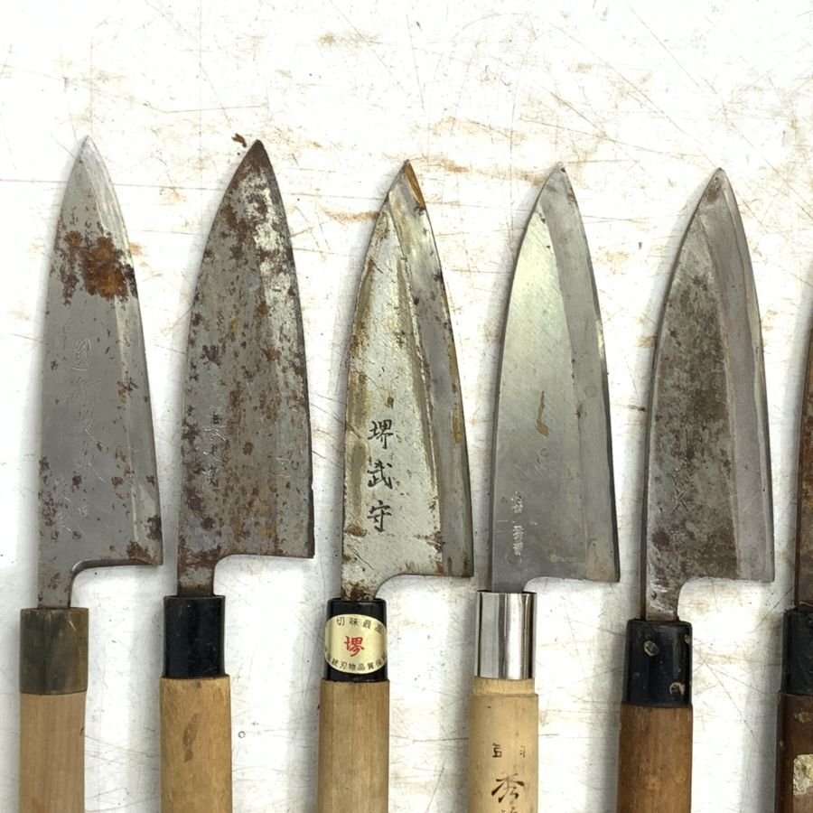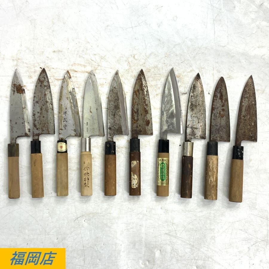 【まとめ売り】出刃包丁等の10本セット 國行鍛錬 白/仙藏/秀兼/忠宗/長七郎/山國屋/堺武守/宗丹/堺保光/他 和包丁等*ジャンク品【福岡】
