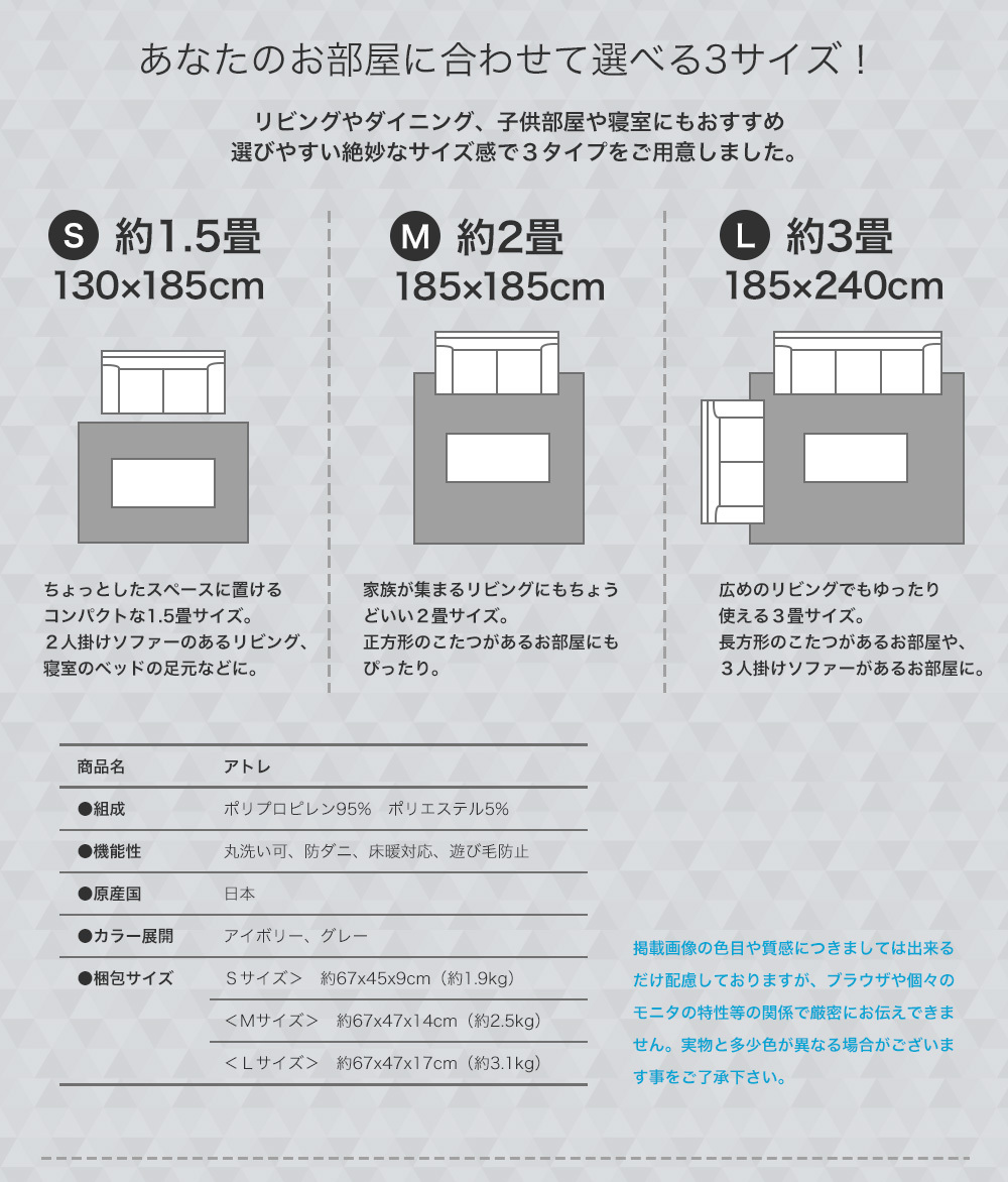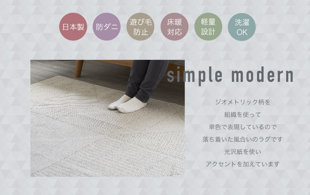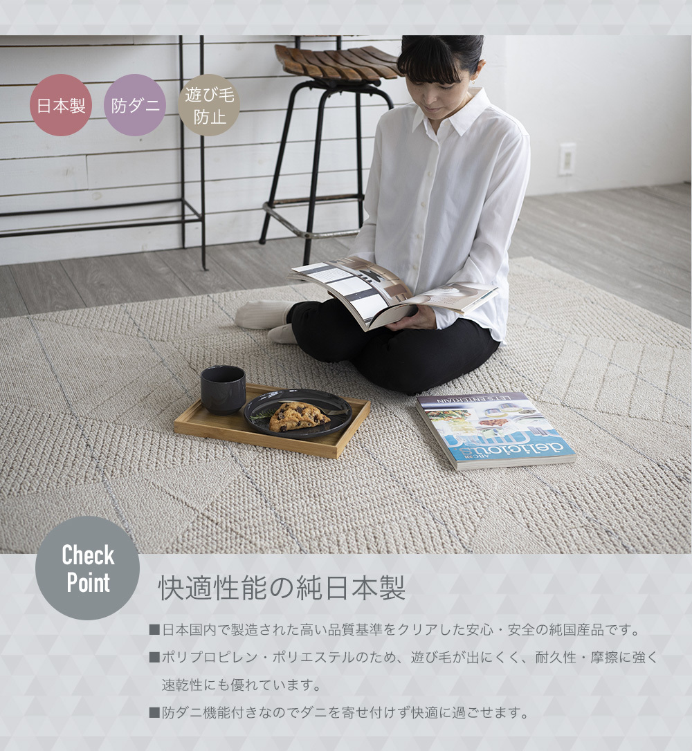 〇仕様 | ・ウォッシャブル、防ダニ、床暖対応、遊び毛防止、日本製、軽量設計、洗濯OK |