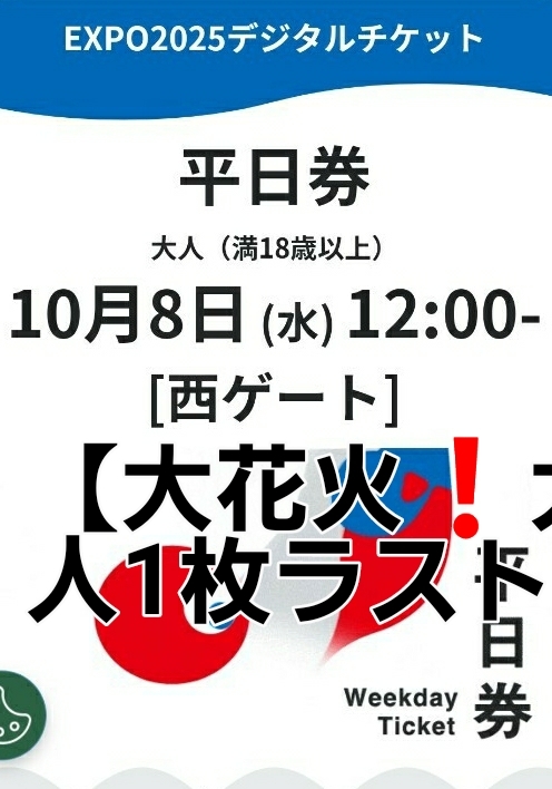 【大人1枚】EXPO2025 大阪・関西万博のデジタルチケット、平日券です。