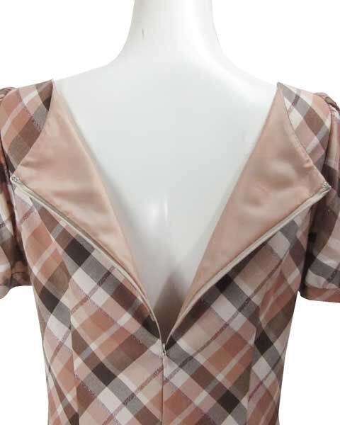 ローウエストデザインのフェミニンなワンピース。ラメの入ったピンクの糸のチェックで、華やかさがあります。甘目デザインで、お出かけスタイルにおすすめです。 |