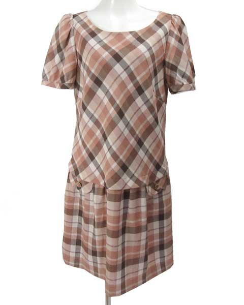 ペイトンプレイス ピンク チェック 半袖 ワンピース 13B |