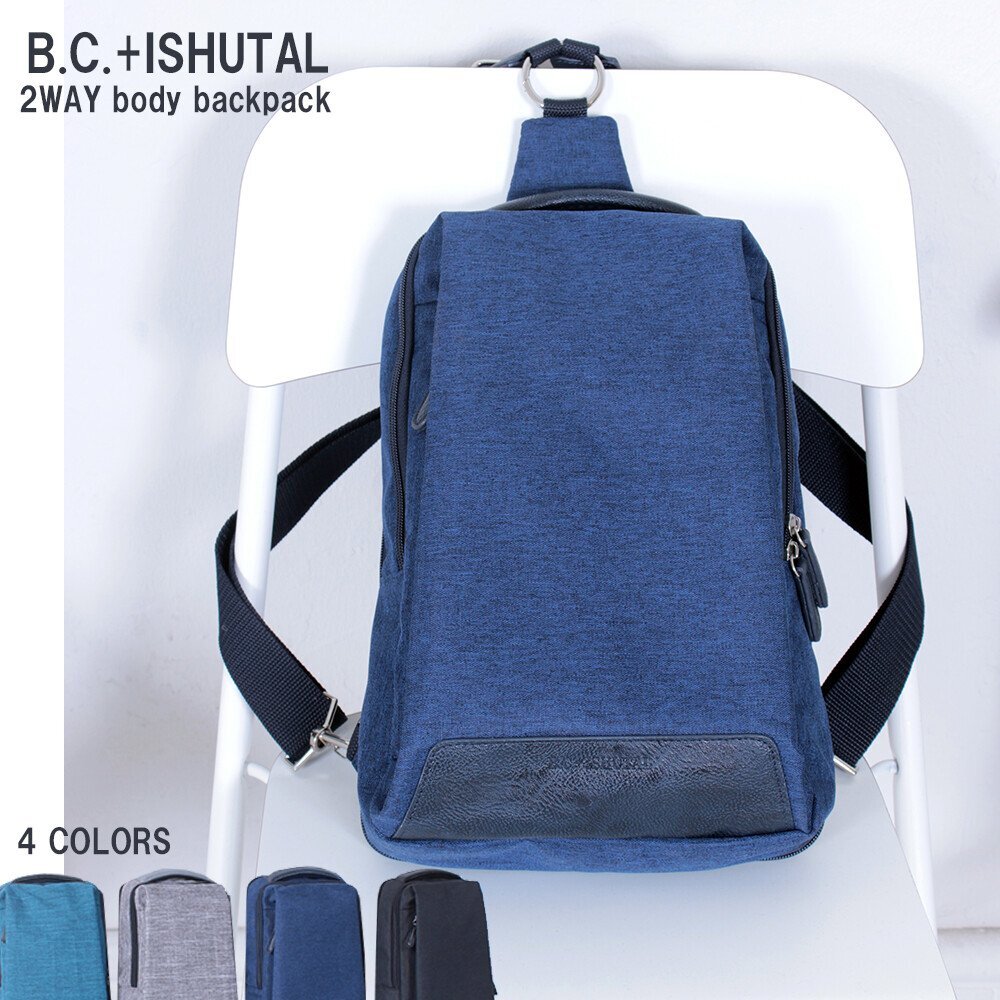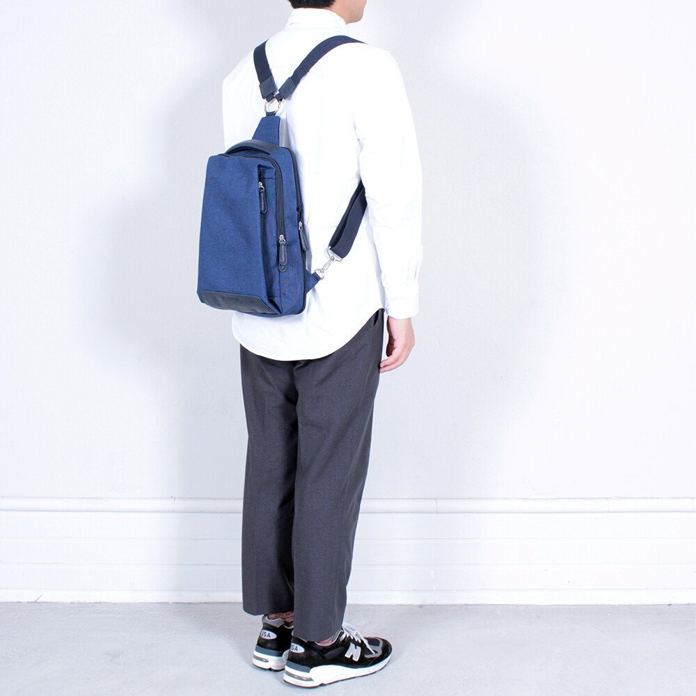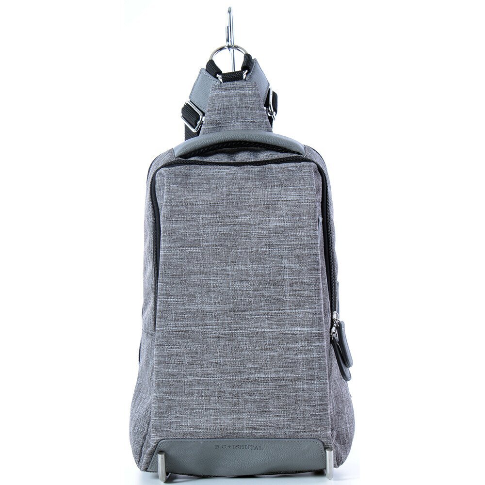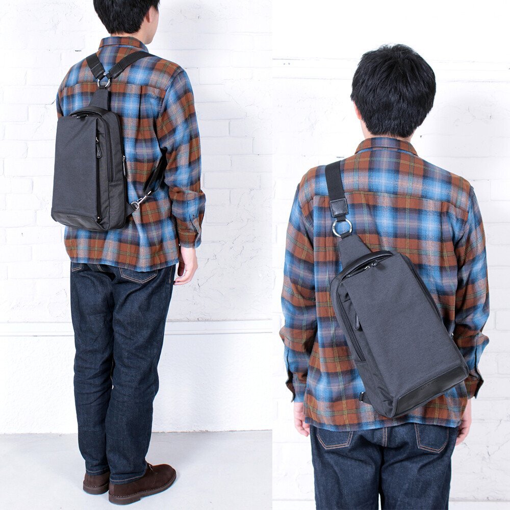 即決可@新品杢ポリエステルと合皮素材を組み合わせた2Wayマルチコンパートメントボディリュック/GY | ||||||||||||