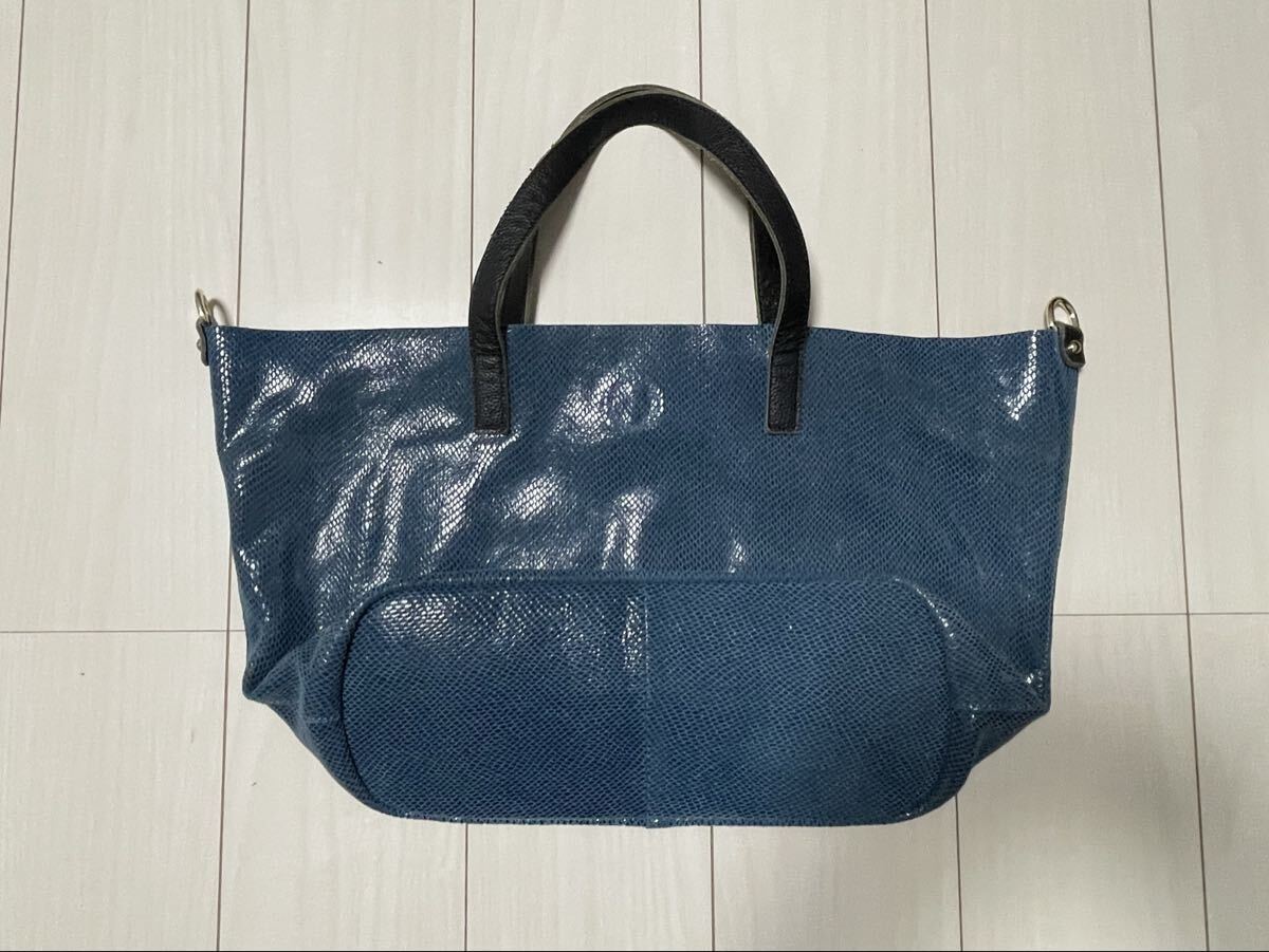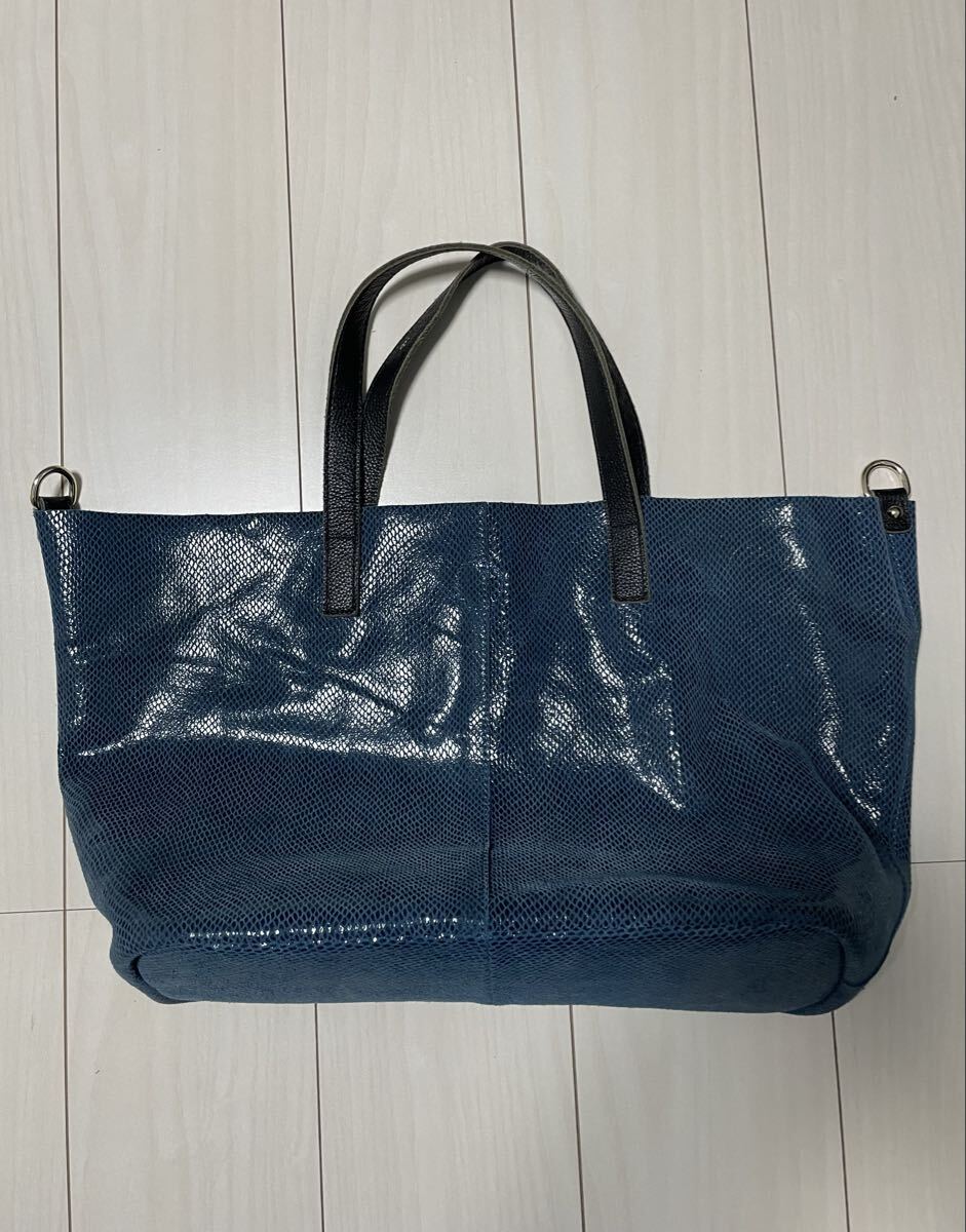 本革の光沢があるへび柄トートバッグです。ショルダーバッグとしても使える2WAYタイプです。(ショルダーはありません)