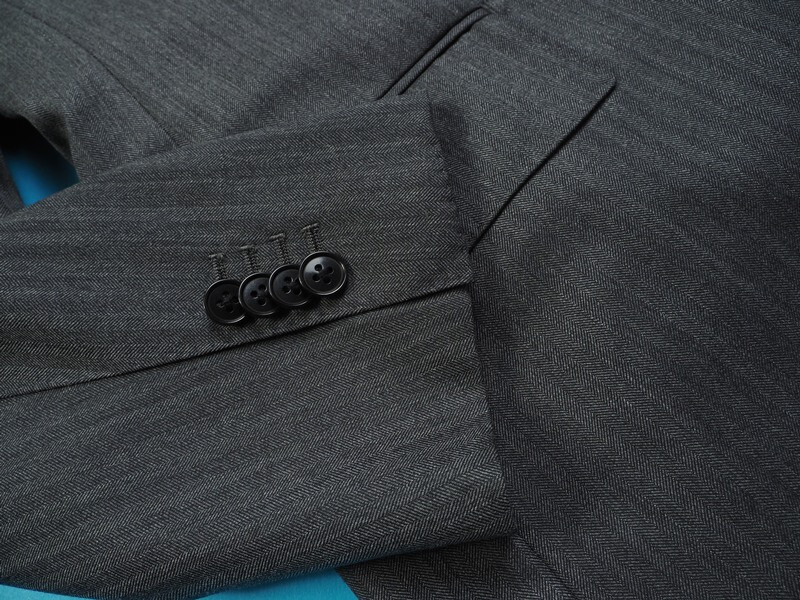 本切羽、お台場仕立て、AMFステッチ、毛芯を用いた縫製など、既製品のブランドスーツではここまで仕立てにこだわったスーツは手に入りません。ファブリックはイタリアを代表するファブリックメーカー、カノニコ社のウール100%ヘリンボーンシャドー生地を使用。イタリアならではの深み、光沢のある染色技術で仕上げています。毛羽立ちはほとんどなく、上質なSUPER110'sウールならではの美しいドレープ性を味わえます。春秋中心に10マンス活躍します。