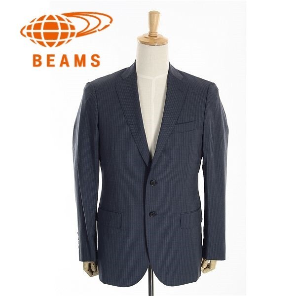 A5269/極美品 春夏 背抜き BEAMS HEART ビームスハート ウール ストライプ テーラード シングル3Bジャケット48青/メンズ スーツ用 ビジネス
