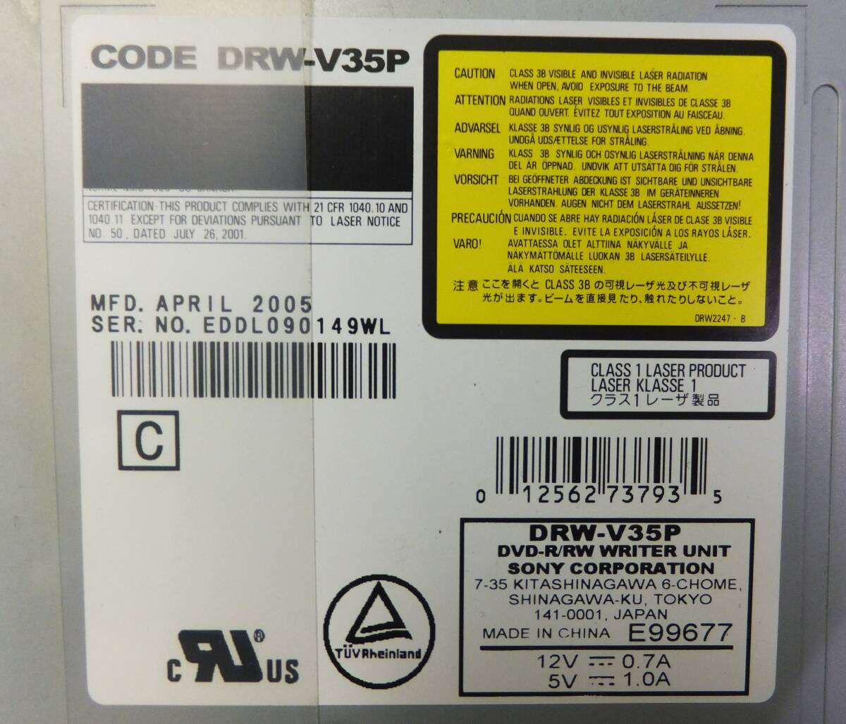 | SONY ソニー レコーダー用 DVD ドライブ DRW-V35P(レコーダー RDR-HX82Wから外し)中古 1 | |
