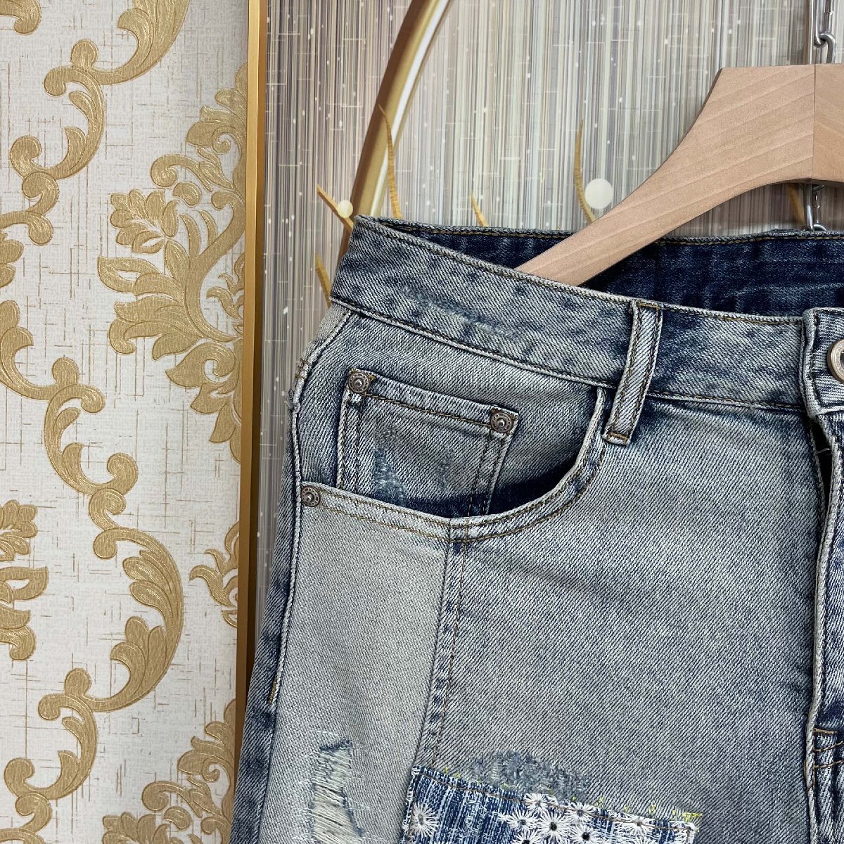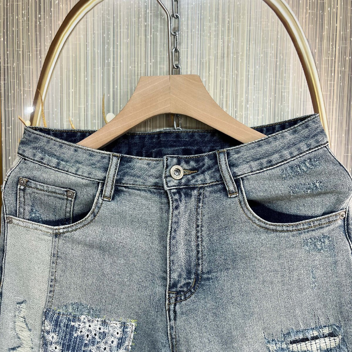 ヴィンテージ加工で独特なレトロスタイルを演出。パッチワークで視覚的な驚きを与え、ダメージ加工でカジュアルさをアップ。前後にもポケットを装備、小物を楽に出し入れすることができます。長すぎず、短すぎない丈感が人気で、この暑い夏に最適!