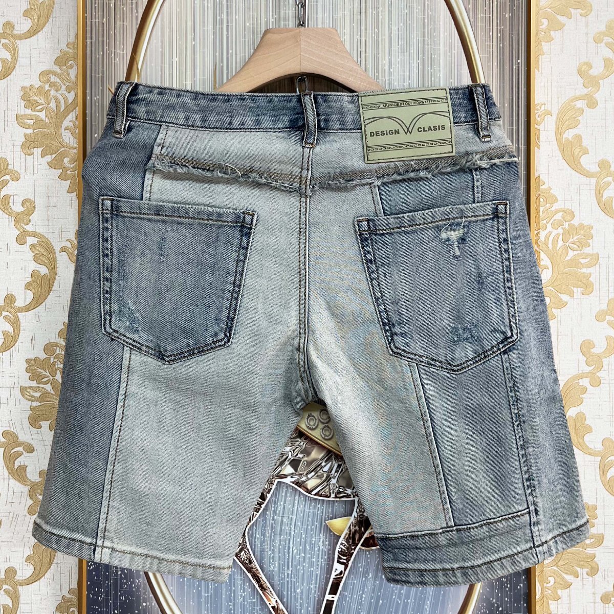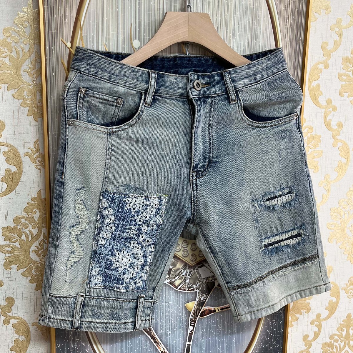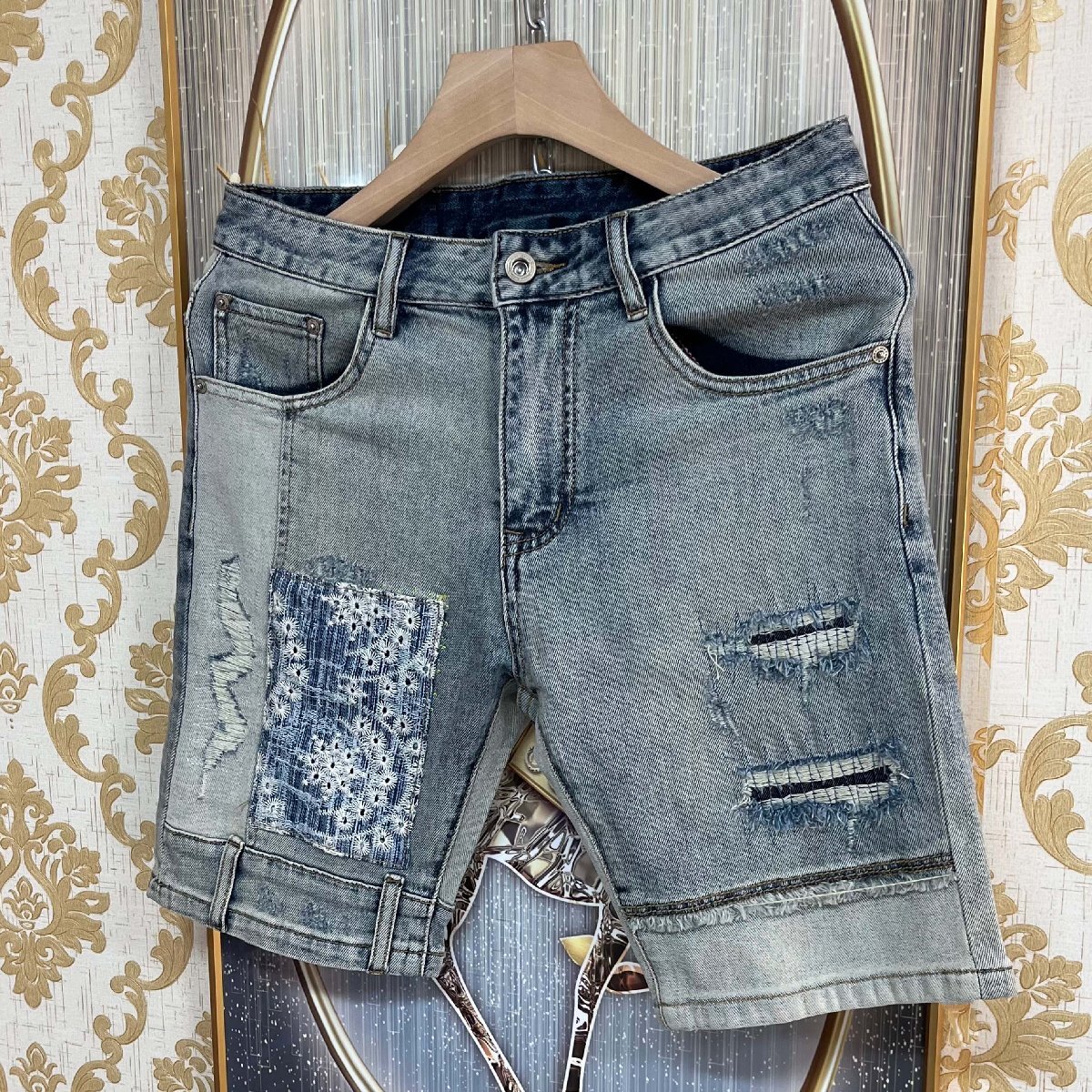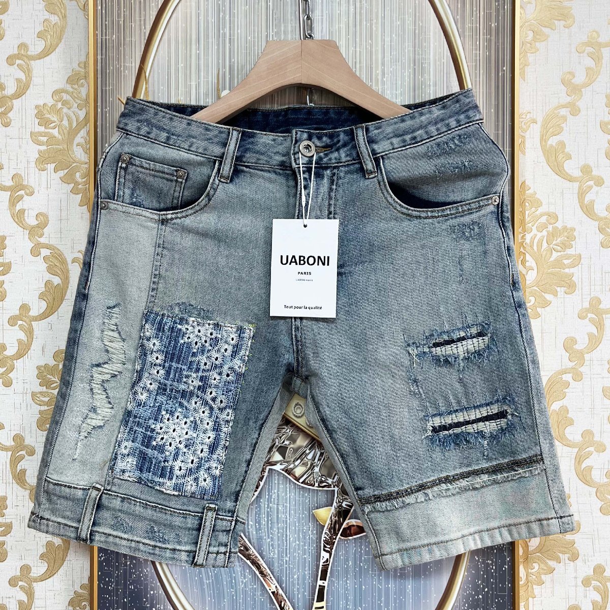 個性EU製&定価3万◆UABONI*Paris*ショートパンツ*ユアボニ*パリ発◆耐久 快適 デニム ダメージ加工 パッチワーク ストリート 夏 サイズ29