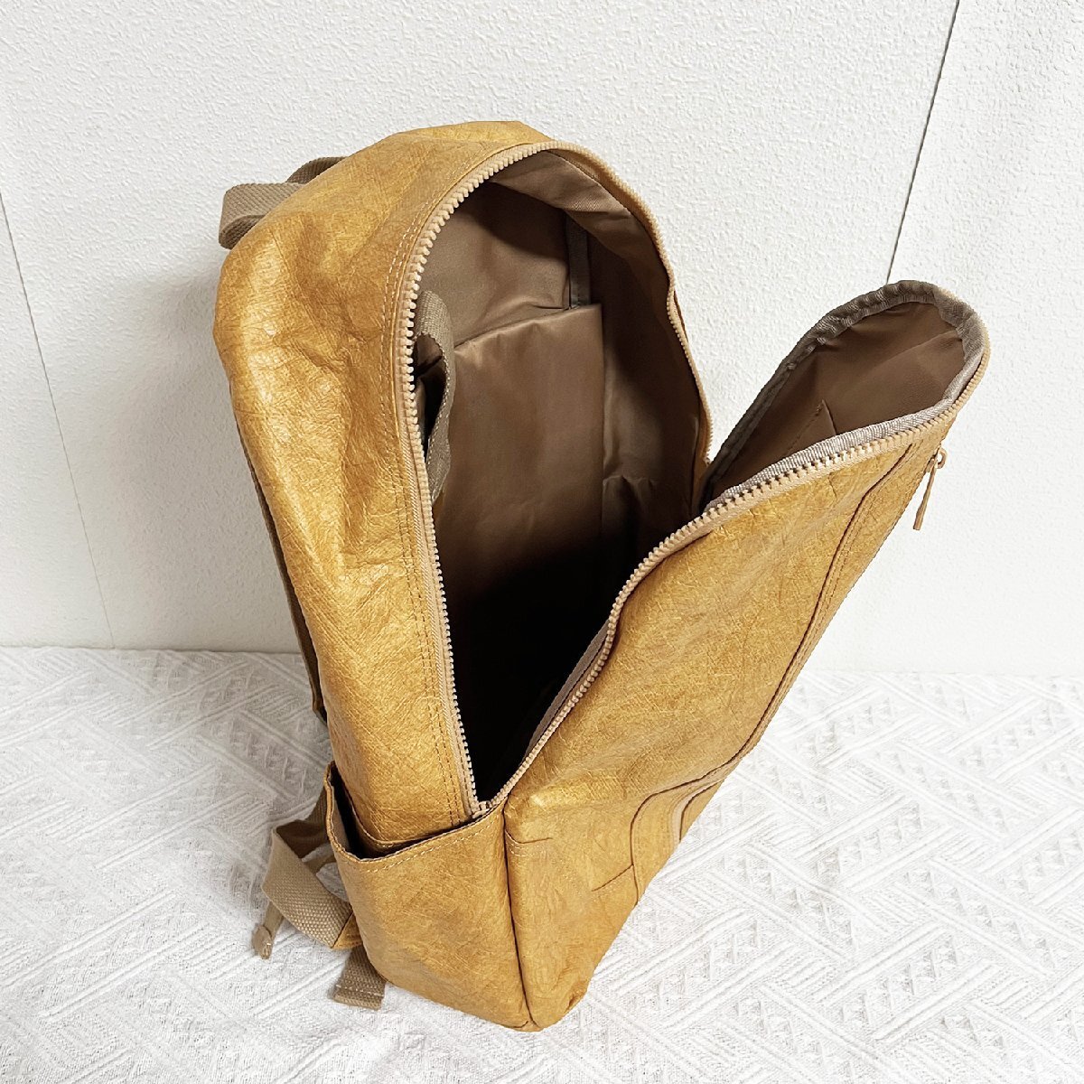 強度・耐久性・通気性・耐水性に優れたタイベック素材を使用した高機能リュックサックです。使い込むほどに独特の風合いが出てきて、手触りも柔らかくなります。とても軽い生地が持ち運びに便利です。リサイクル可能で環境に優しいのも嬉しいポイントです。