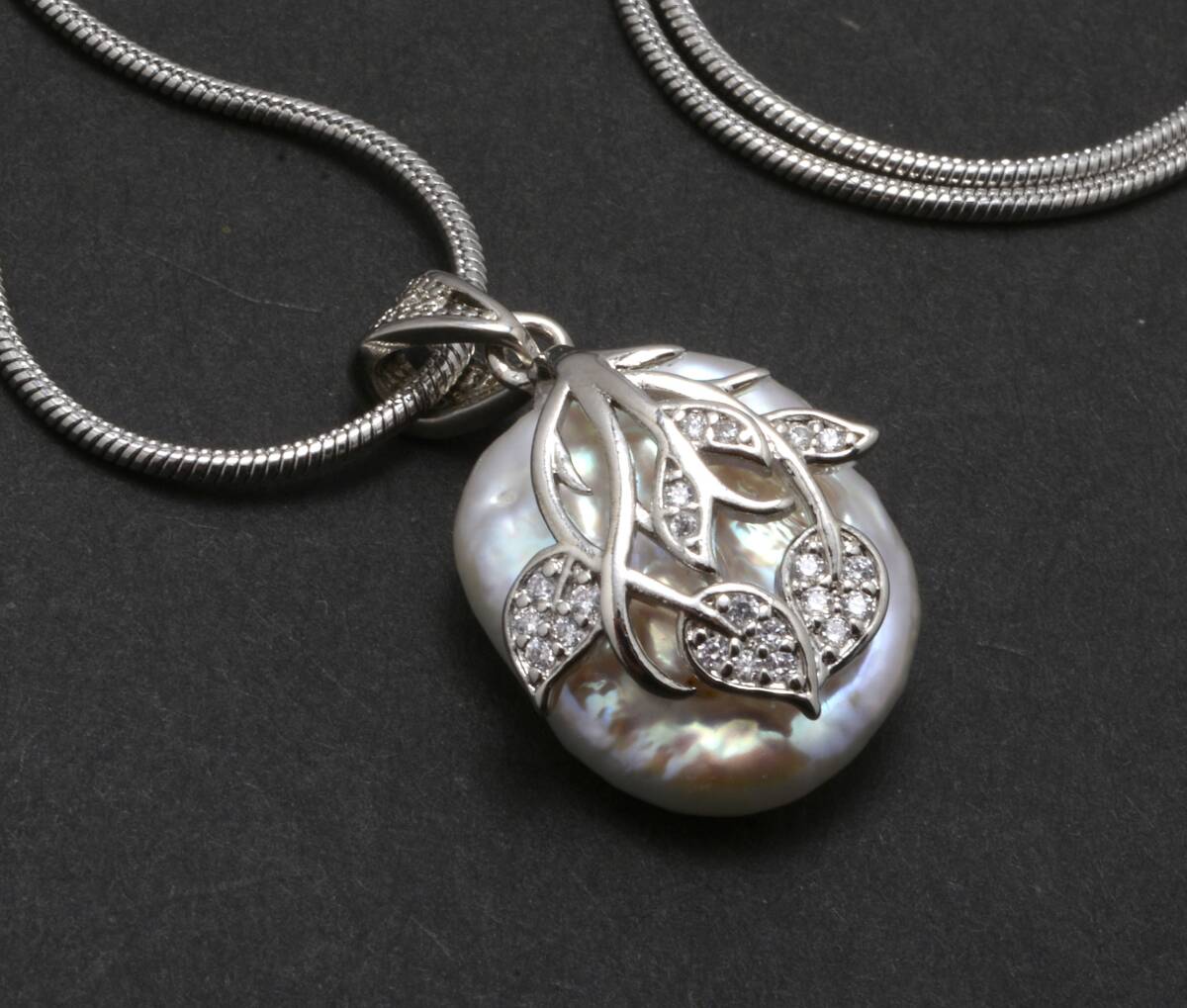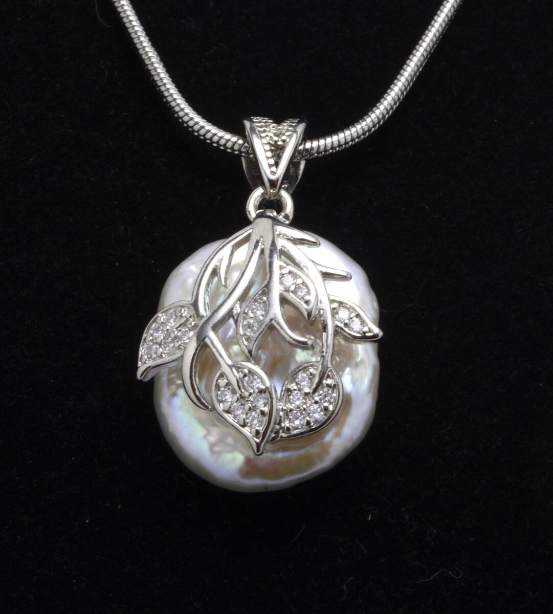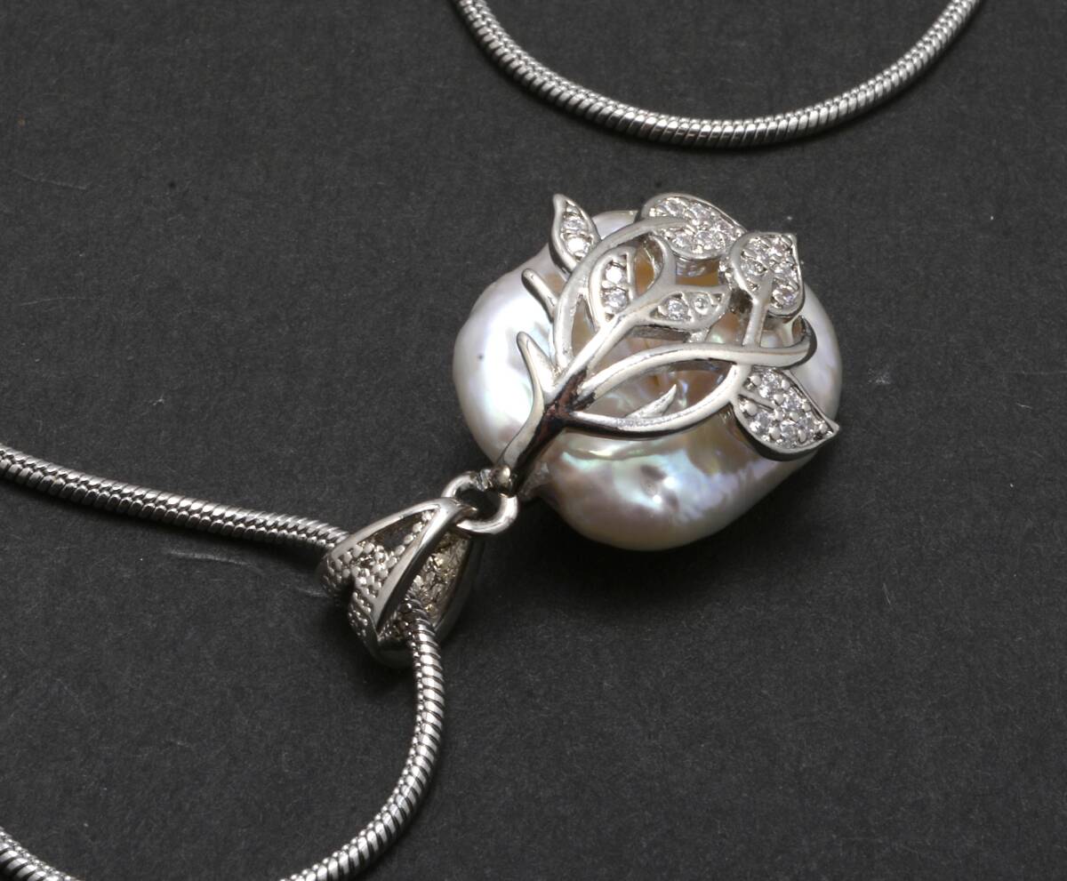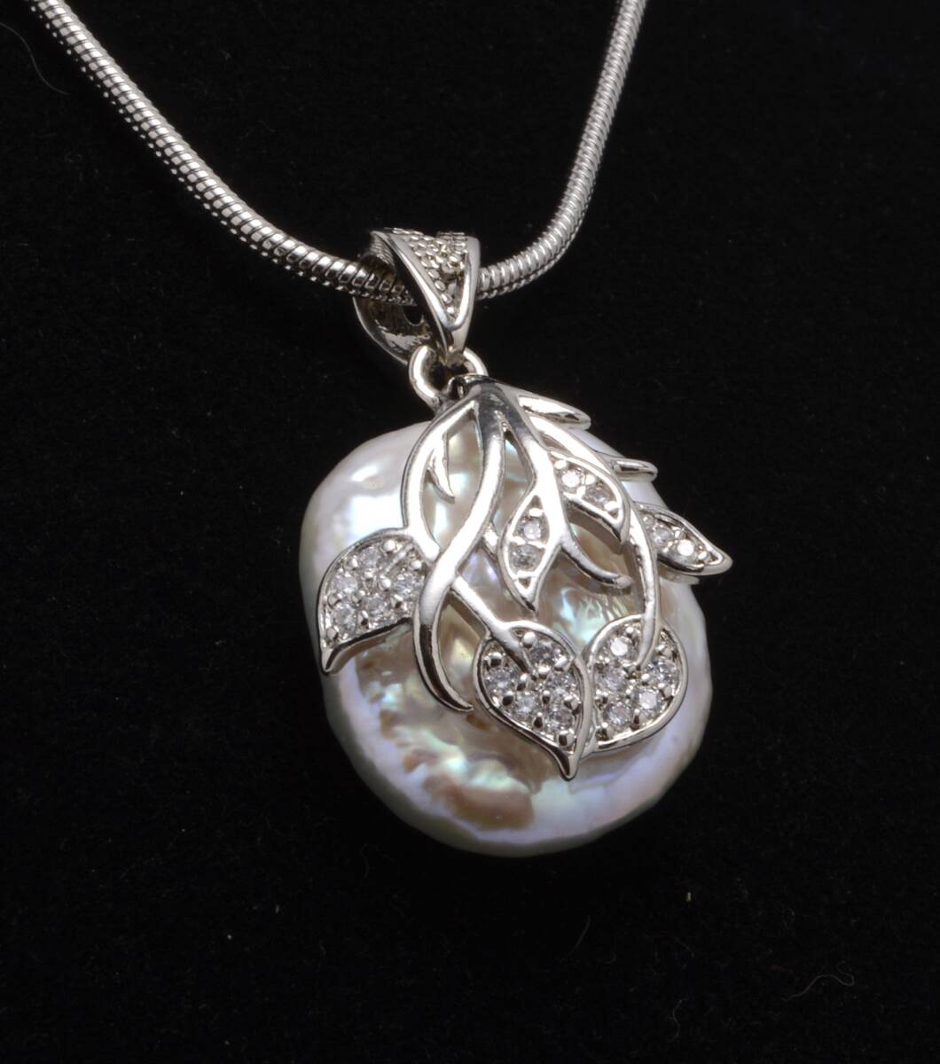 深い真珠光沢を放つ真珠の美しさ・・。 そしてこのアールヌーヴォーテイスト溢れる、自然主義芸術の美しいデザイン。素晴らしい空間を作り出しています。  作りの素晴らしさとパールの美しさがひとつとなり、ひとつの芸術作品へと昇華します。 とても素敵ですよ、いかがですか?