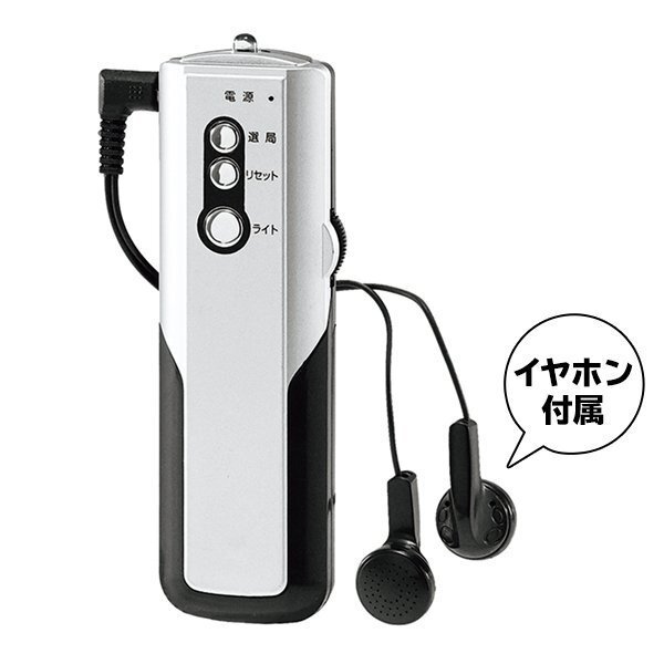 ラジオ LEDライト付き 防災 イヤホン付き AM ワイドFM対応 ミニサイズ 電池式 軽量 小型 情報 アウトドア 送料無料 100K◇ ラジオSTI