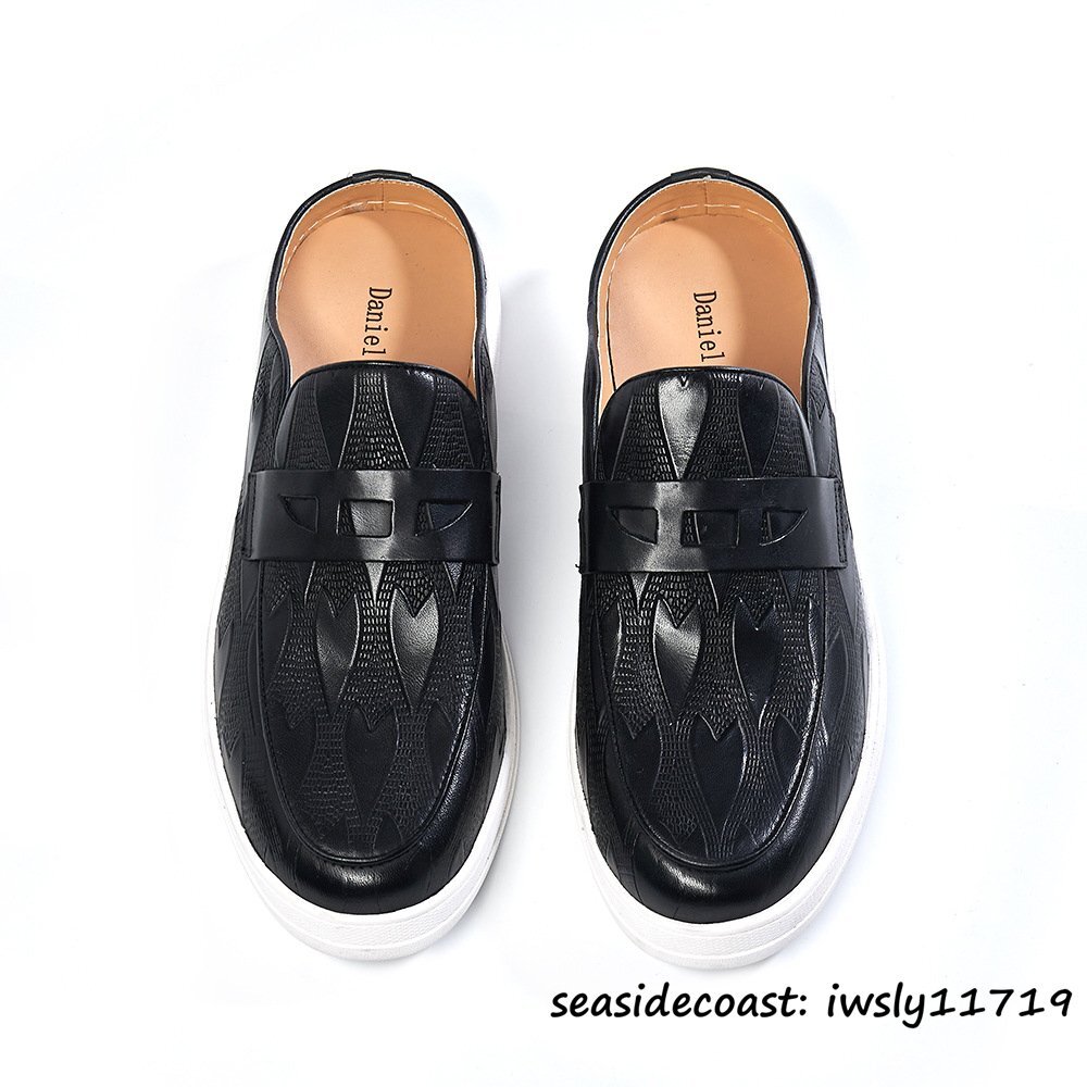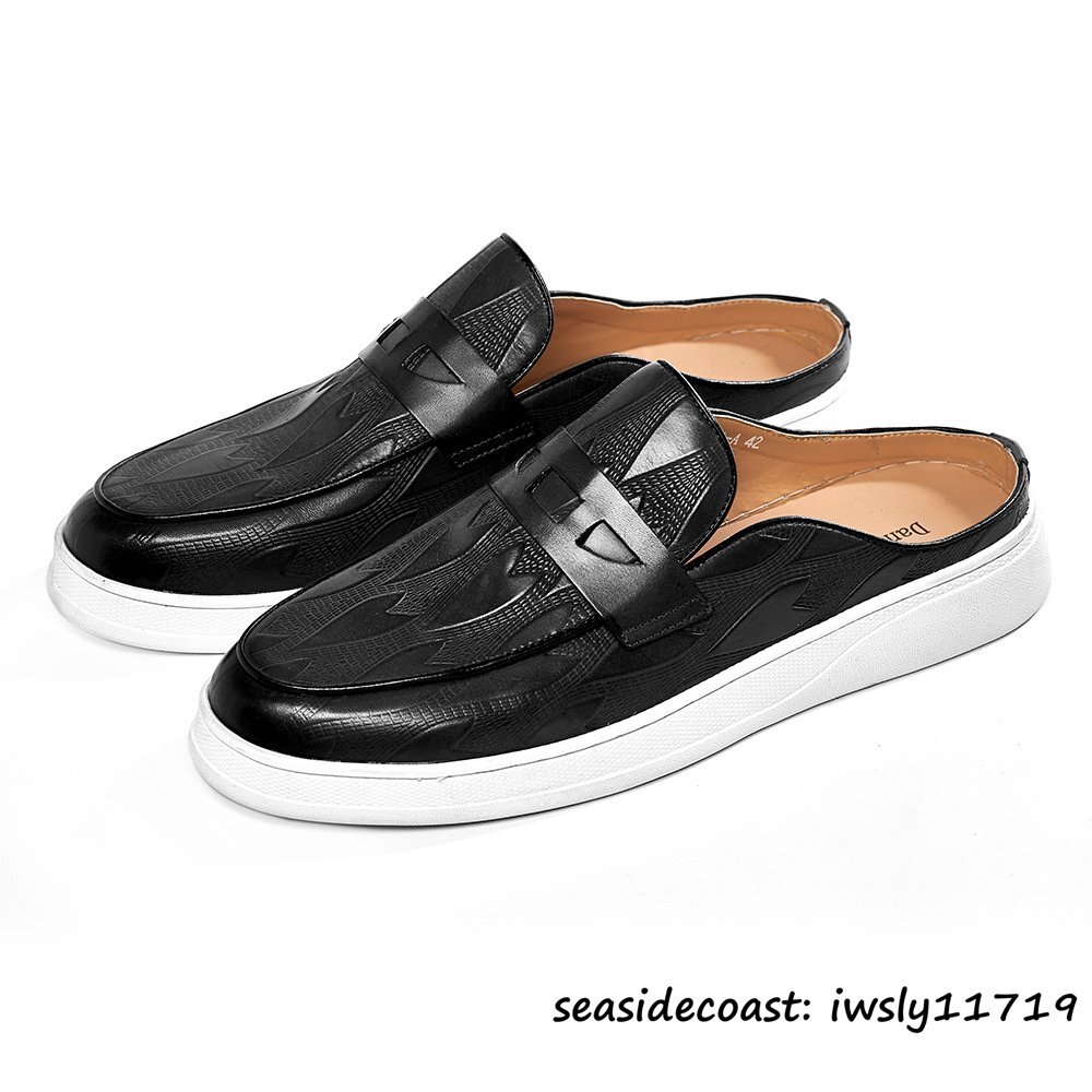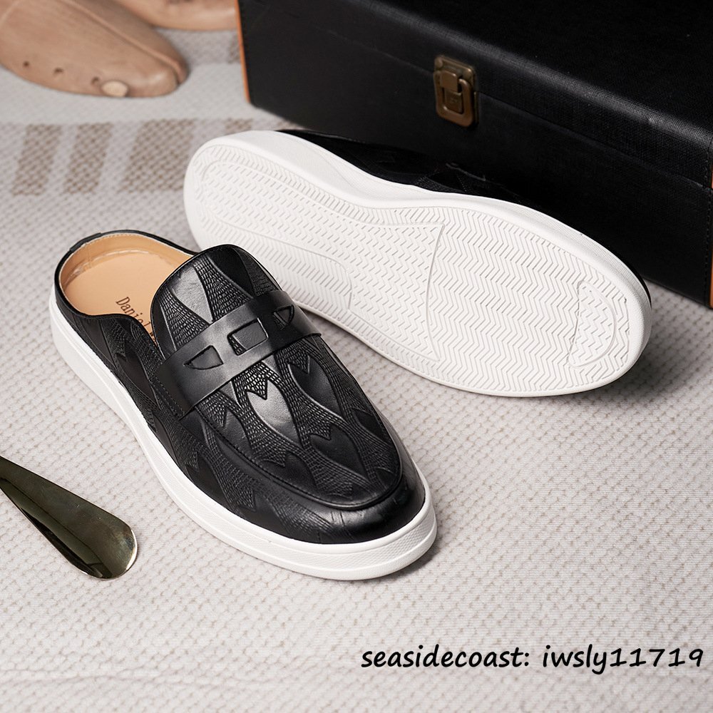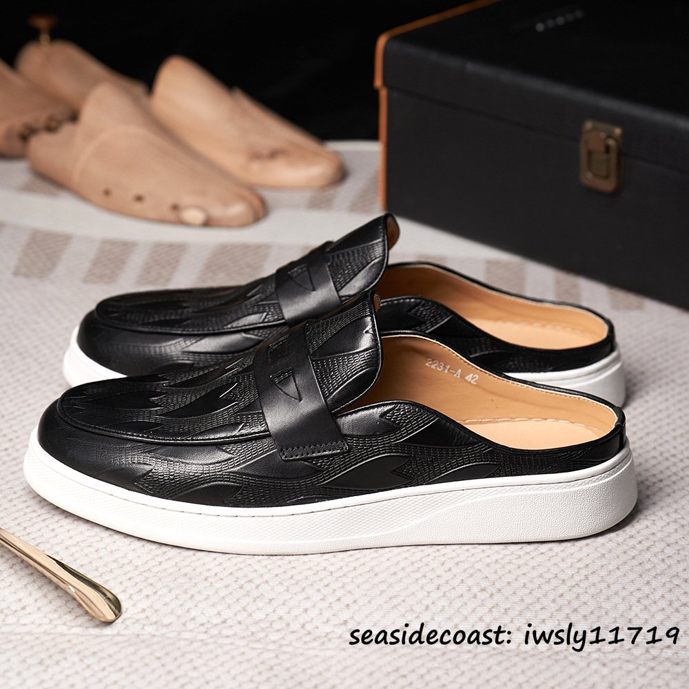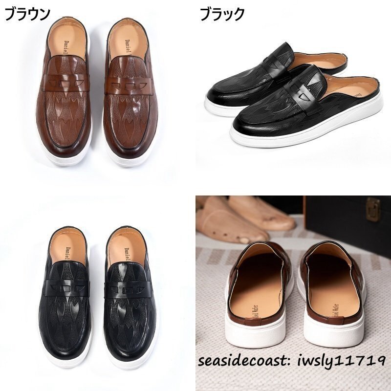 超高級◆ローファー 本革 メンズ サンダル ビジネスシューズ 職人手作り 牛革 レザーシューズ スリッパ スリッポン 紳士靴 ブラック 24.5cm