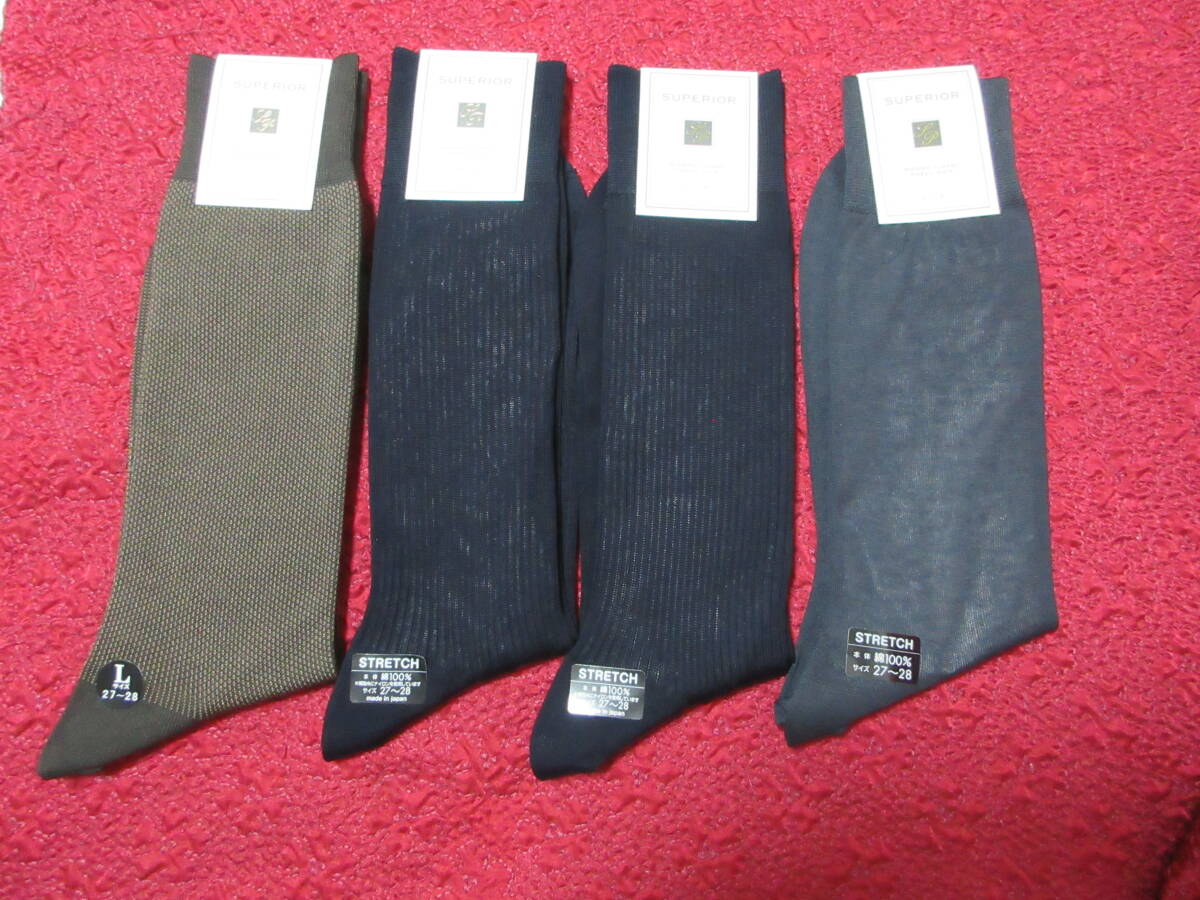 即決 海島綿  SUPERIOR スーペリオール ビジネスソックス濃紺2足/ダークグレー1足茶系1足計4足組 27~28cmシーアイランドコットン  日本製