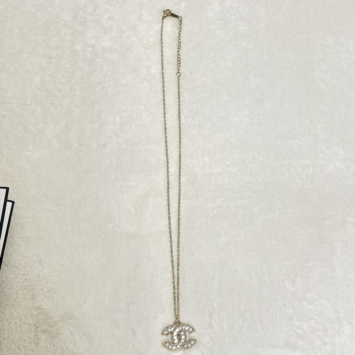 1円〜【美品】CHANEL シャネル ココマーク ヴィンテージボタンネックレス(ストーン装飾) ゴールドカラー ラインストーン ココマーク