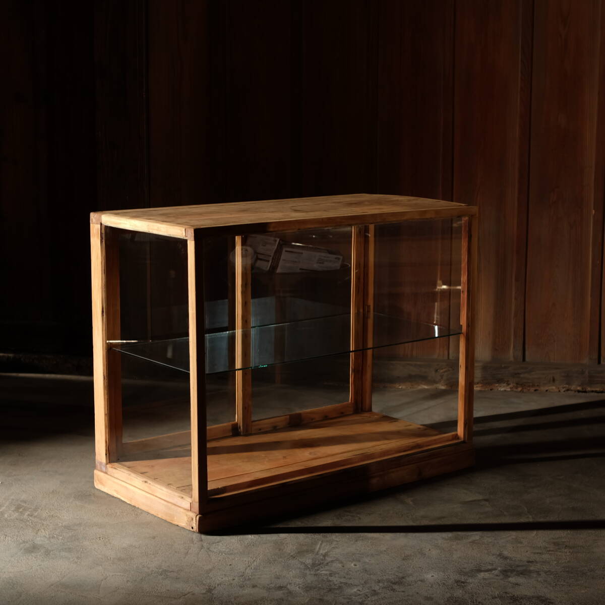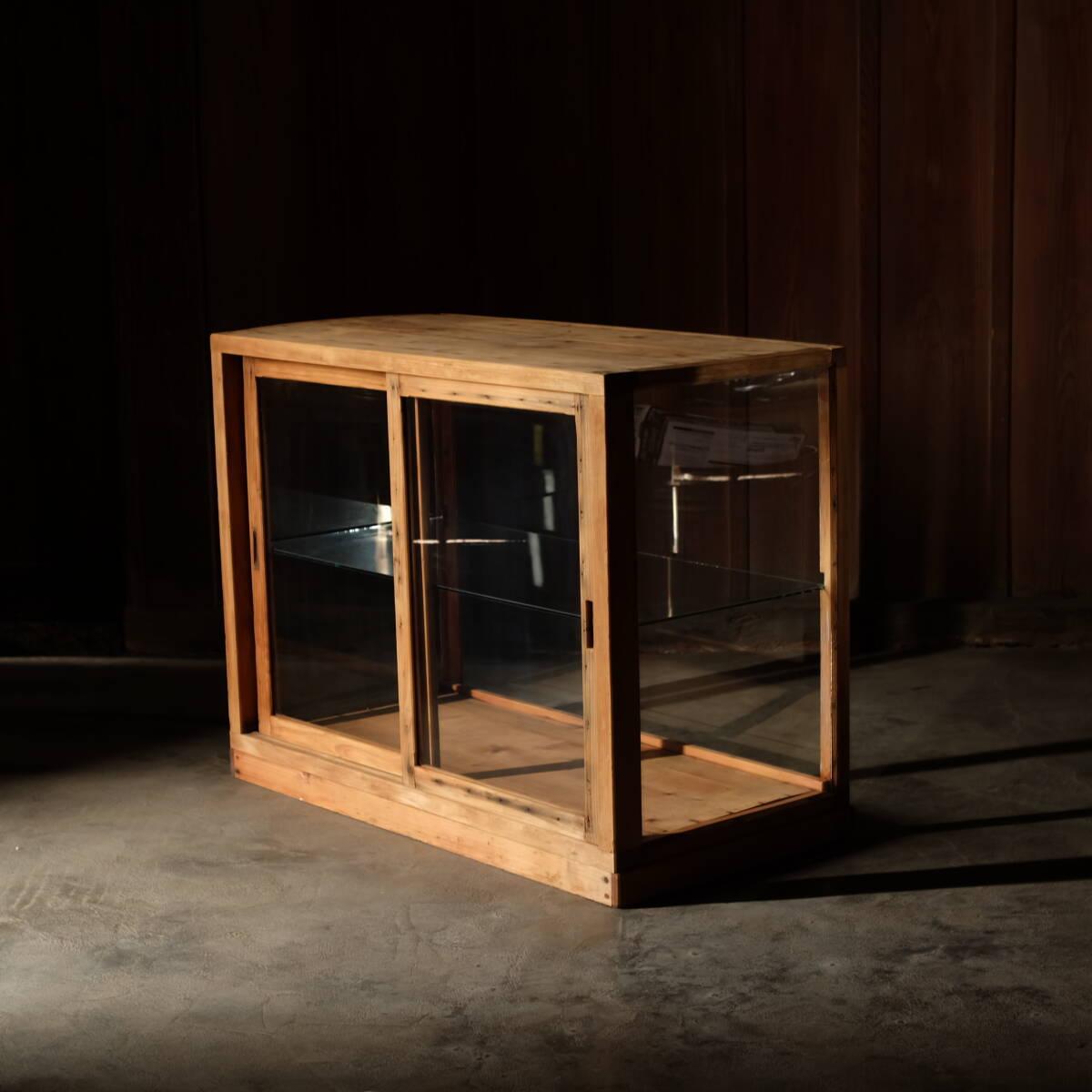 | 商品説明 | この度は数ある商品の中から閲覧頂き有難うございます。 当方は古家具、古道具を扱っております。 商品は[古くても新しい]をコンセプトに丹念に洗いをかけております。仕上げは素地仕上げの天然オイル仕上げで触れた時の手ざわり、見た目や質感がやわらかい仕上がりで小さなお子様やペットの暮らすご家庭でも安心してお使いいただけるかと思います。 引き出し等の動作は手入れをしてスムーズに開閉できる様に施してあります。 尚、古家具や古道具という商品上、虫食い跡や反り、歪みや古傷等ある物もございます、それらも古家具、古道具の風合い、味わいとご理解いただき詳しい説明欄に多数の画像によりじっくりご確認くださいます様よろしくお願い致します。 [商品名] 2枚戸ガラスショーケースB [商品サイズ] 高さ 700mm 幅 890mm 奥行き 450mm 棚板ガラス 5mm アートおまかせ便 Cランク [商品紹介] 総無垢材 ガラス棚板2段ガラスショーケース。 [取扱い商品について] ご入札前に必ずご確認をお願い致します。 当店で取り扱う商品は、長い年月使い込まれた 風情、趣のある古家具や古道具が中心となります。 新品の様な状態をお求めの方や、古道具、古家具にご理解の頂けない方は 入札をお控え頂きますようお願い致します。 商品の性質上、ノークレーム、ノーリターンでお願い致します。 画像には写しきれない傷や欠け、割れや染み、落としきれない 汚れや古い虫食い等、ある場合もありますので予めご了承下さい。 この様な経年劣化も趣きや豊かさのひとつとお考え頂き、 お使い頂ける方にお願い致します。 パソコンの環境により、写真と実物の色合いに違いが出てしまう 場合があります、ご了承下さい。 イタズラ入札防止の爲、落札後三日以内手続き、ご連絡が無い場合、かんたん決済の期日までにお支払いの確認ができない場合は落札者様都合にて削除させて頂きますこちらも合わせて ご了承ください。 なお、落札後にyahooより送られる落札通知メールを必ずご確認頂いた上で メールに記載されているお取引方法の内容に沿って ご返信をお願い致します。 送料(税込) / アートおまかせ便・Cランク