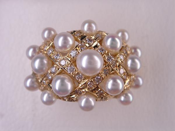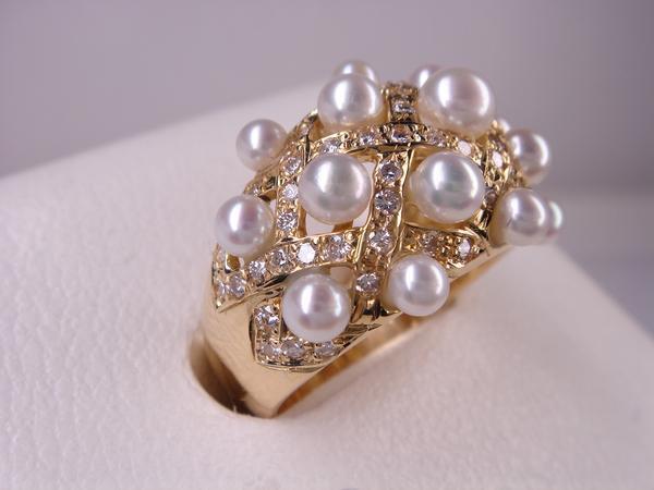 ★新品・送料無料★18金パール&ダイヤデザインリング★0.50ct★