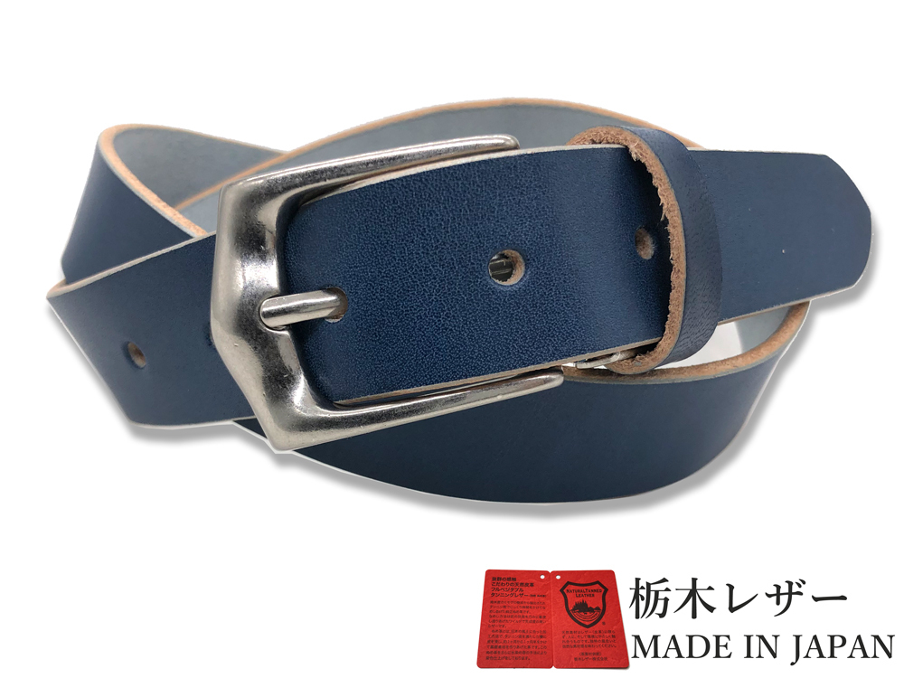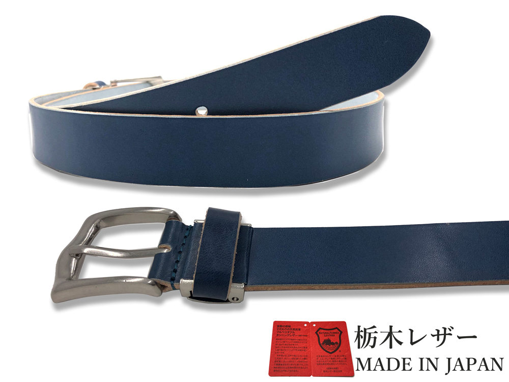 1円スタート 訳あり アウトレット 新品 B品 栃木レザーベルト 牛革 本革 メンズ カジュアル 革 レザー 国産 日本製 ネイビー 30mm W048NYb
