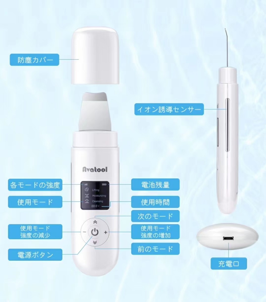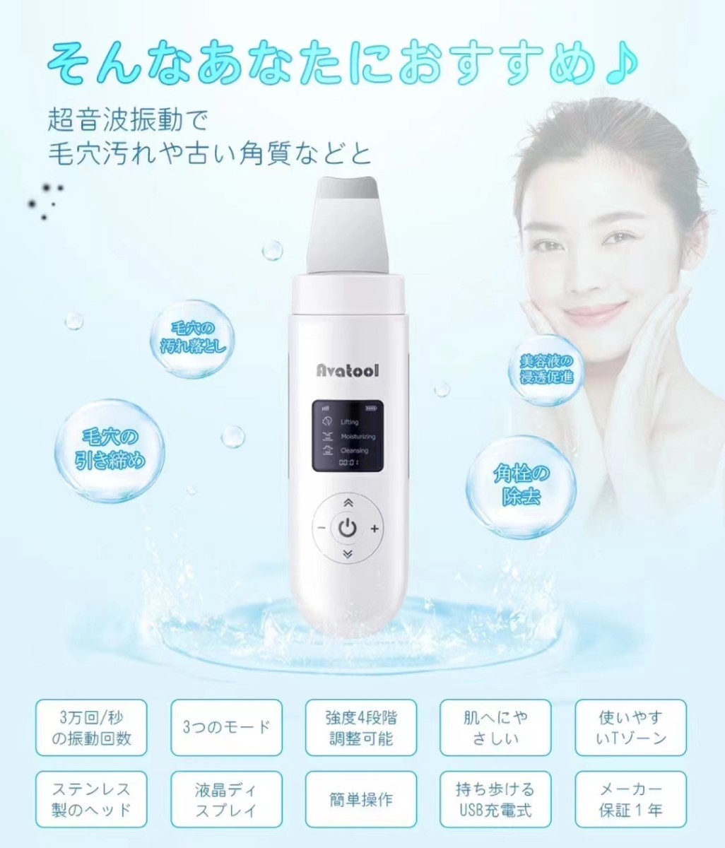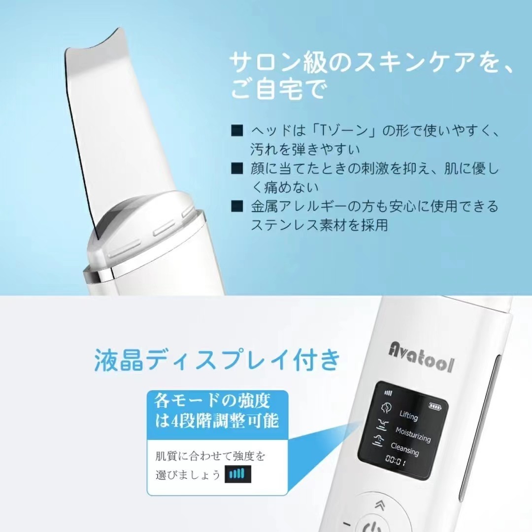 Avatool ウォーターピーリング 超音波ピーリング EMSマッサージ 毛穴ケア 超音波 美顔器 ems ピーリング ニキビ 毛穴 黒ずみ 除去 角質ケア 角質除去 ピーリング 洗顔器 イオン導入 リフトアップ 美肌 マッサージ 皮脂 汚れ除去 USB充電式