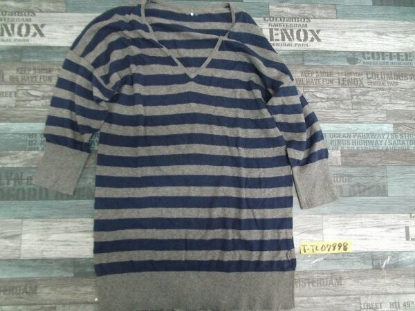 レディース Vネック ボーダー 五分袖 ニットソー グレー紺 です。