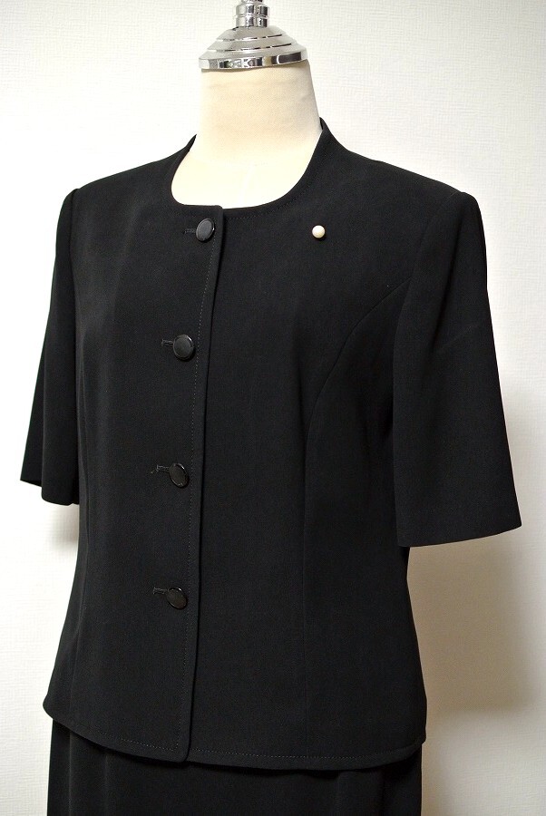 1954年創業、日本のフォーマルウェア文化を築いたパイオニア的存在、UN FURL TOKYO SOIR「アンファール・東京ソワール」 の礼服3点セット(通年+夏用ジャケット+スカート)です! 冠婚葬祭に対応する上品なブラックフォーマル、前開き仕様で着脱も快適です。 裏地には高級素材「キュプラ」を使用し、シルクのような光沢と肌触りで、着心地・通気性ともに優れた日本製ならではの丁寧な仕立てです。 ジャケットはともに肩パッド入りです。 【東京ソワール】 ブラックフォーマルの定義を確立、冠婚葬祭にふさわしい装いの基準を業界に先駆けて提案。 百貨店・量販店・通販・海外展開:多様な販路でフォーマル文化を普及。 カルバン・クライン、ジバンシィ、ランバンなどのライセンスブランドも多数展開。 品質管理の徹底し、QTEC認定検品技術者による厳格な検査体制を導入しています。 色は、ブラックです。 こちらのモニターでは、ほぼ実物どおりの色合いに写っていると思います。 MADE IN JAPAN(日本製) 「株式会社 東京ソワール」 工場番号:000961 品番:3208902 |