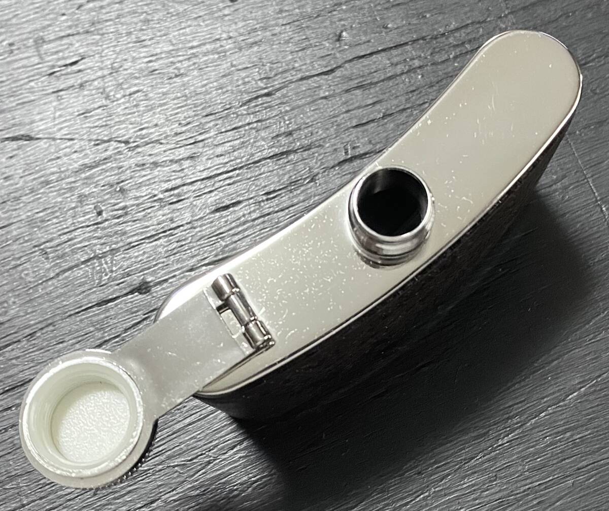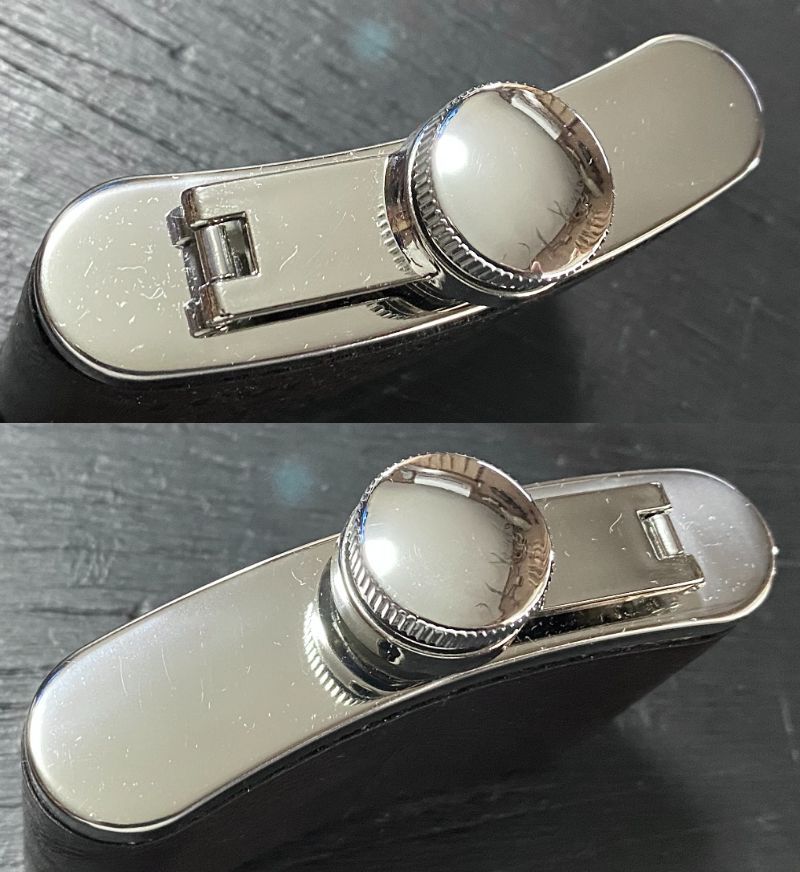 ■状態 :生産時の物ですが合皮を張り付ける際に接着剤が少しはみだした箇所(画像5)。メッキ部分に細かい傷(過去に出品いたしました箱入り未使用品にも同じような細かい傷はありました)。見落としはご容赦くださいませ。