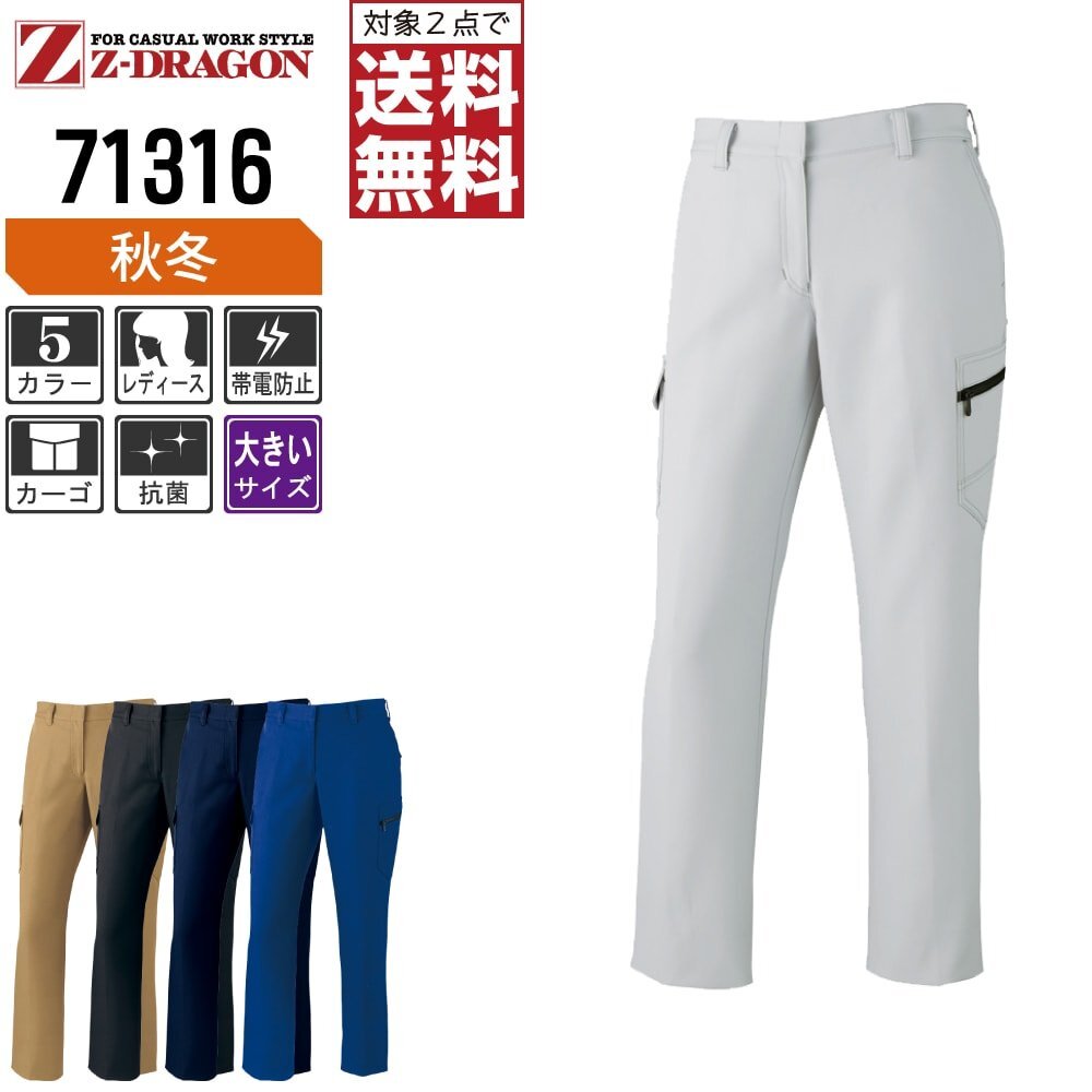 Z-DRAGON ジィードラゴン 秋冬 製品制電 レディース カーゴパンツ JIS規格 帯電防止服 71316 色:ネービー サイズ:91
