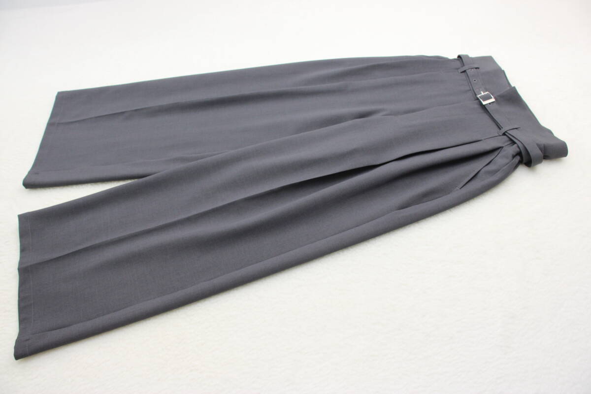 3757 新品 ウエストゴム防シワベルトディテールタックワイドパンツ チャコールグレーSサイズ