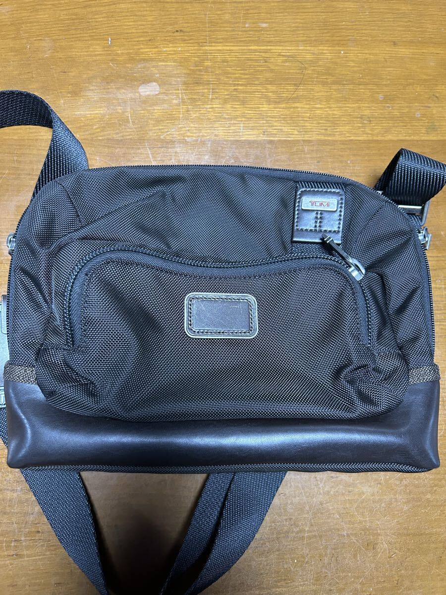 丈夫で大人気なTUMIのブラックショルダーバッグです。