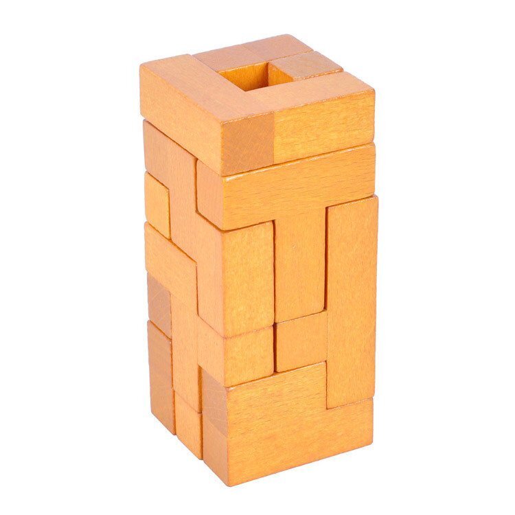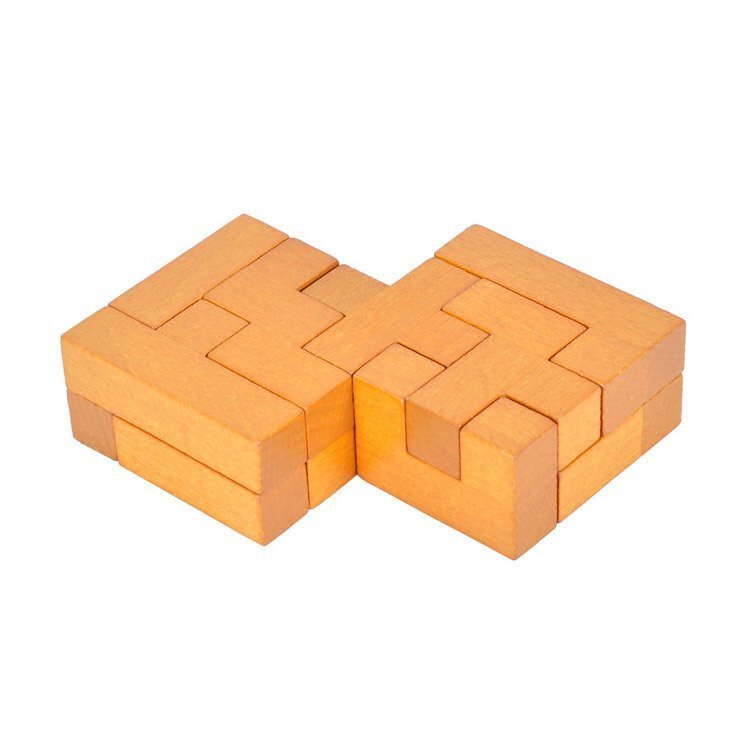 いろいろ形をした13個のピースを組み合わせる木製パズル。