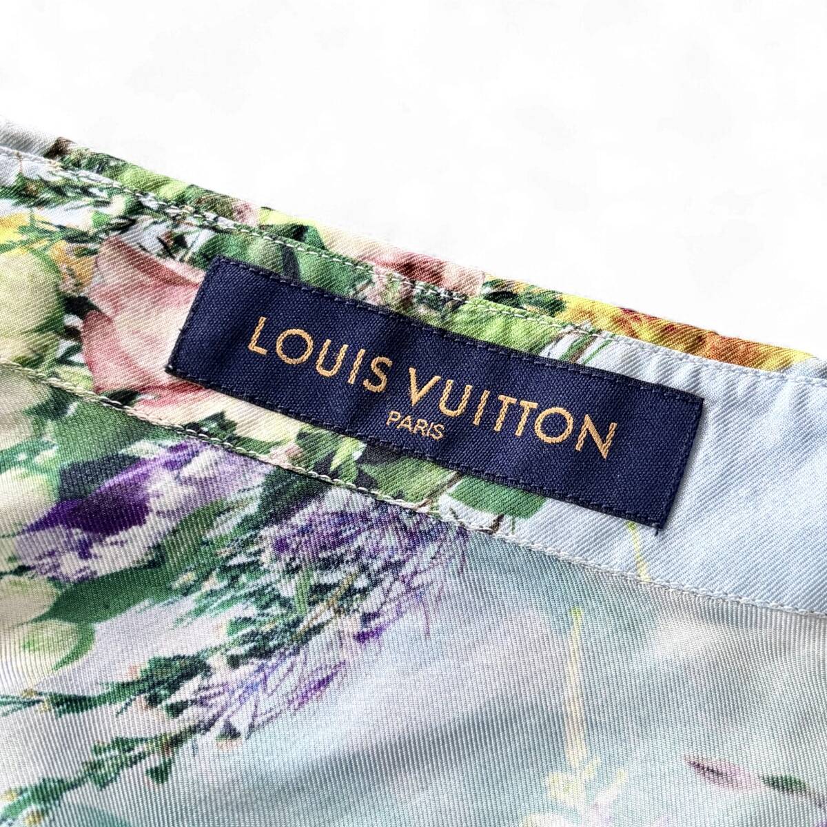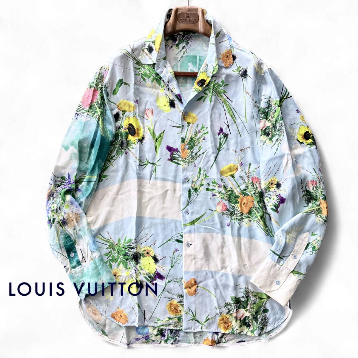 :美品 10B08 XLぐらい M表記『ルイ ヴィトン』シルク100% 2020SS ヴァージル・アブロー プリンテッド フラワー シャツ 長袖 マルチカラー