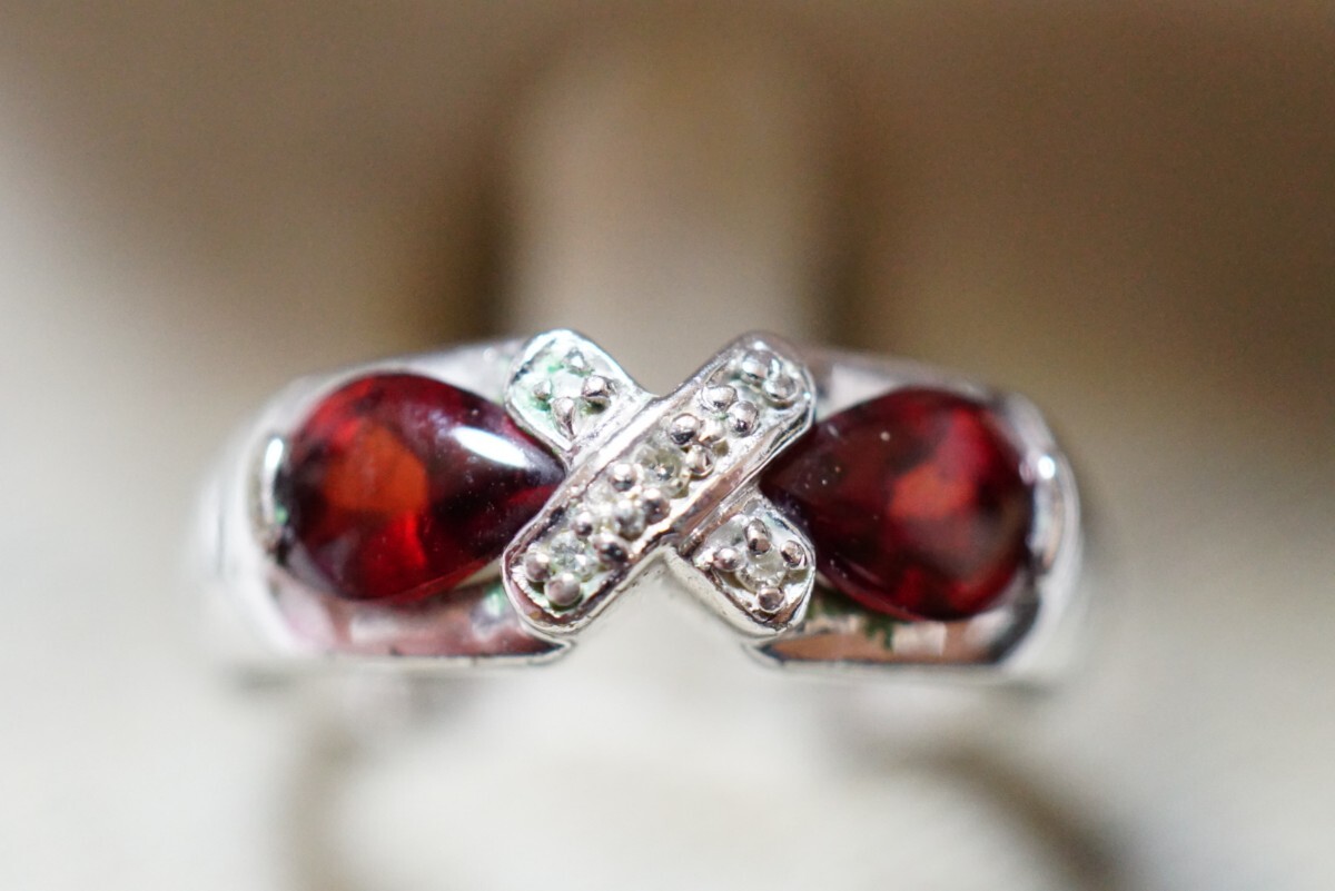 558 ガーネット 天然ダイヤモンド リング 指輪 ヴィンテージ アクセサリー SILVER刻印 天然石 色石 宝石 カラーストーン 装飾品