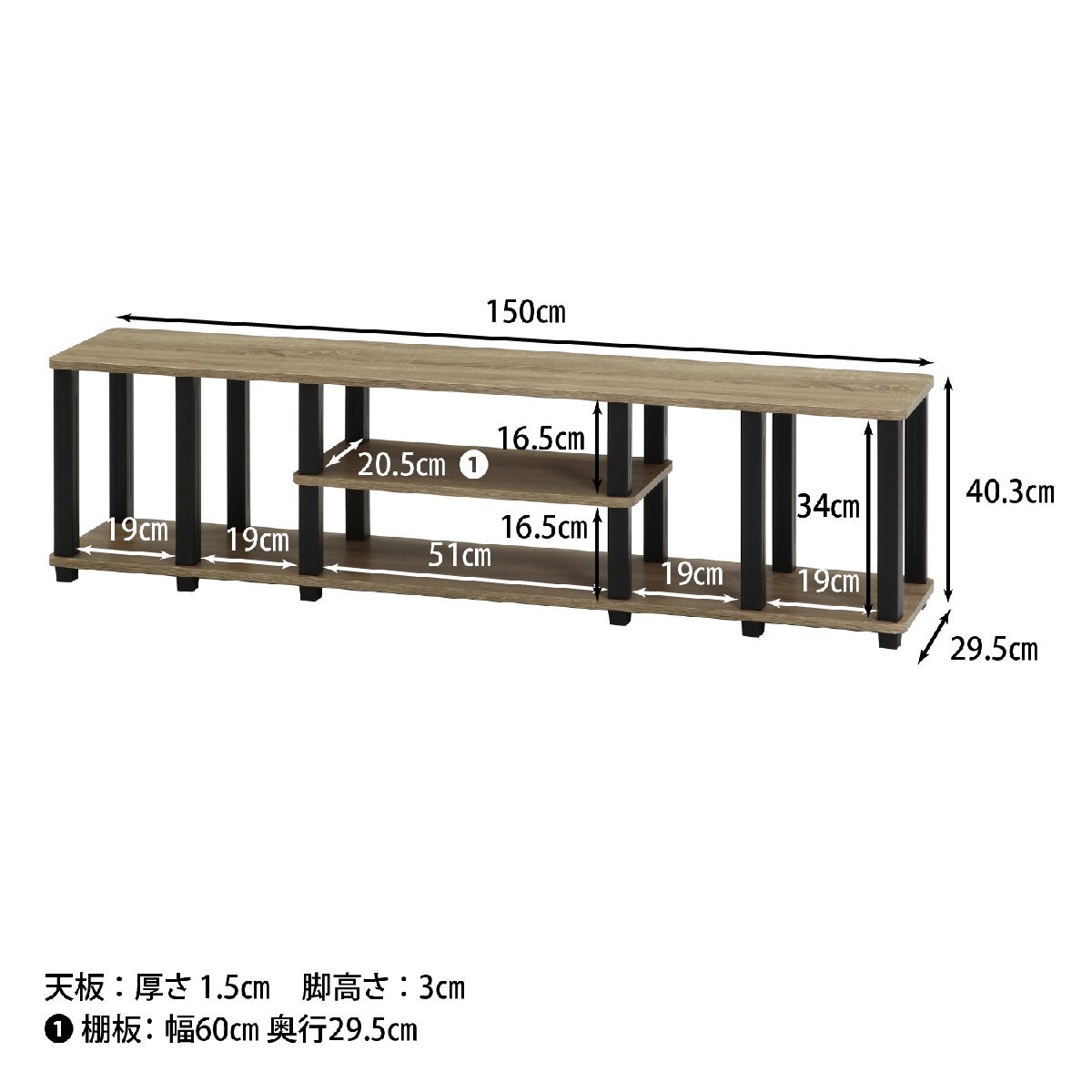 サイズ | 全体:幅1500 × 奥行295 × 高さ403mm 棚板サイズ:幅600 x 奥行295mm 天板厚み:15mm 耐荷重(天板):30kg |