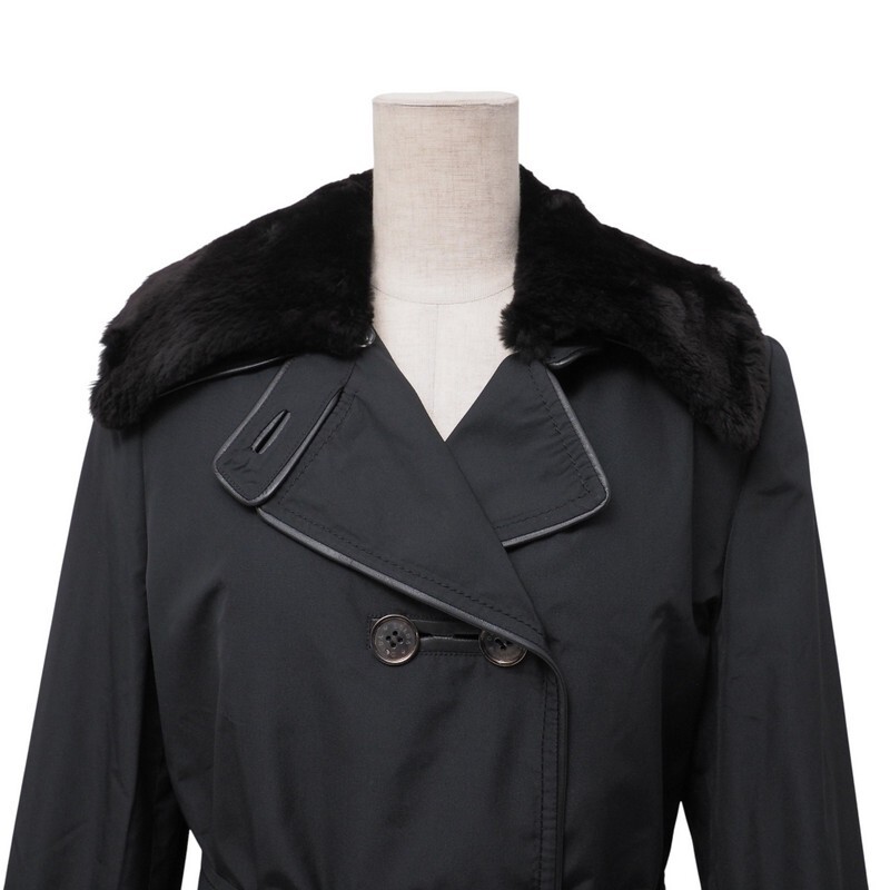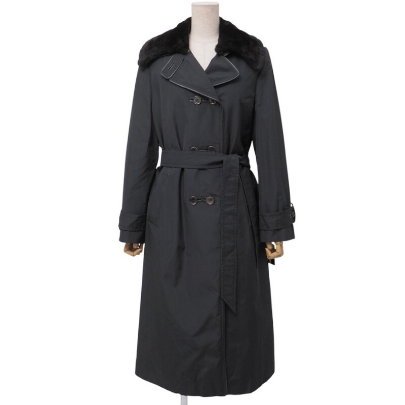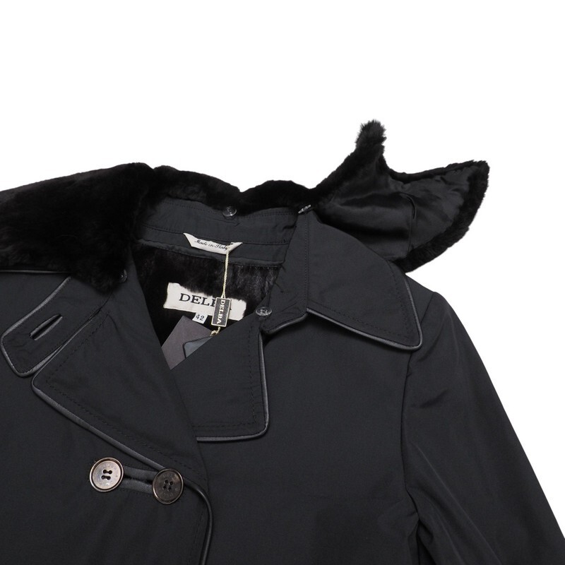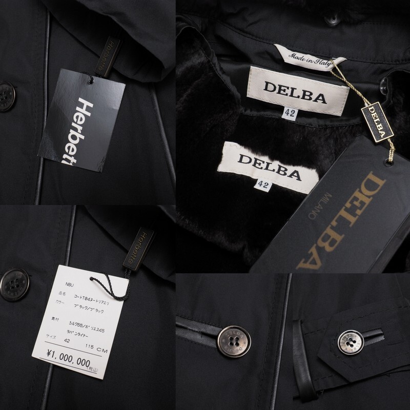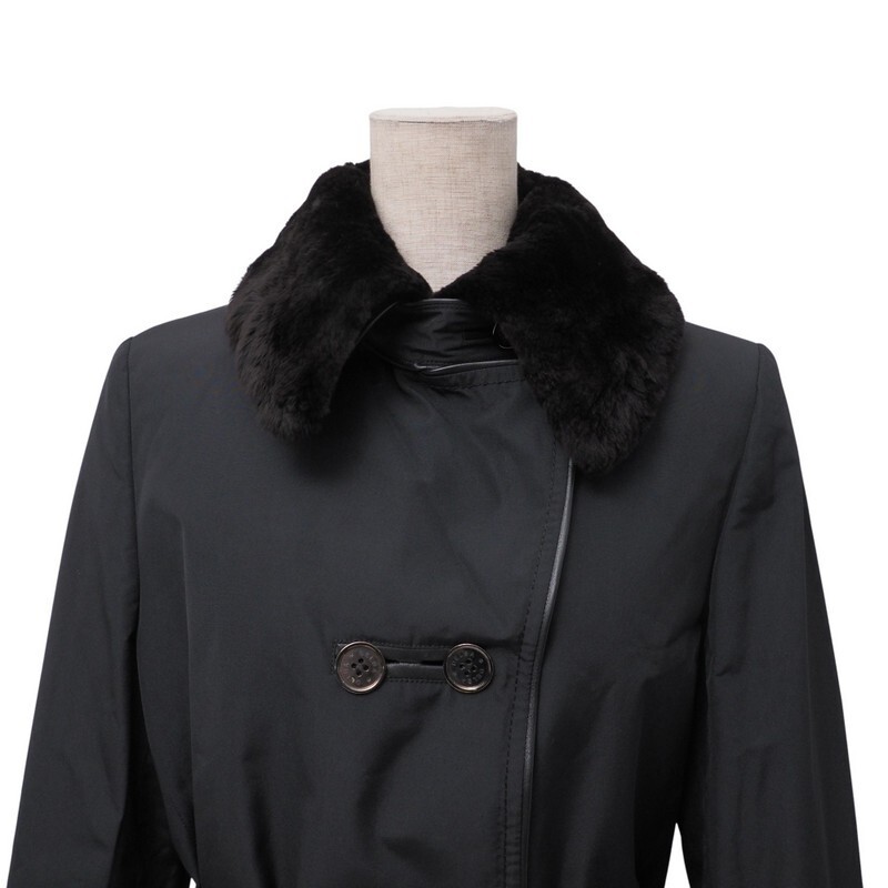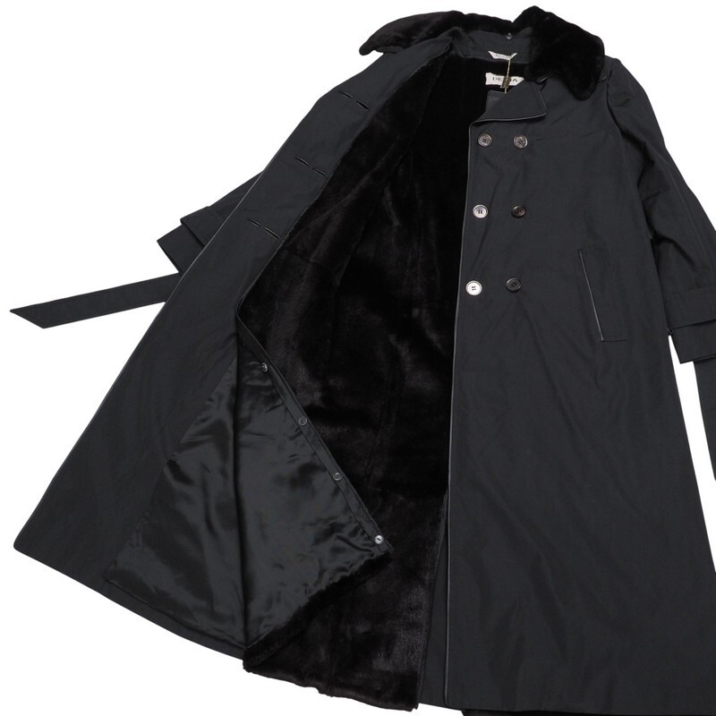 GS3056=未使用*定価100万*イタリア製*デルバ/DELBA*シルク*襟ヌートリアファー*ロングコート*ラビットファーライナー*サイズ42*ブラック | |||