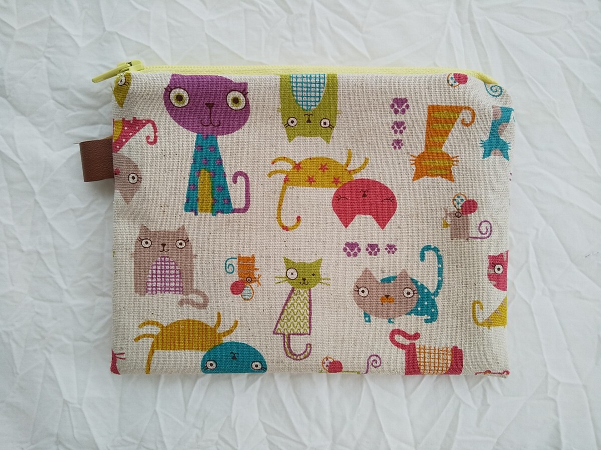 猫柄のぺたんこポーチです。