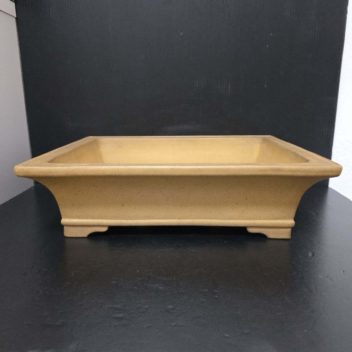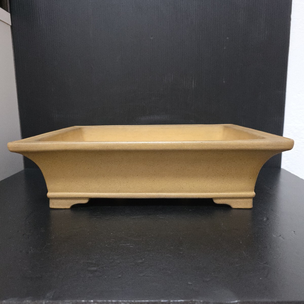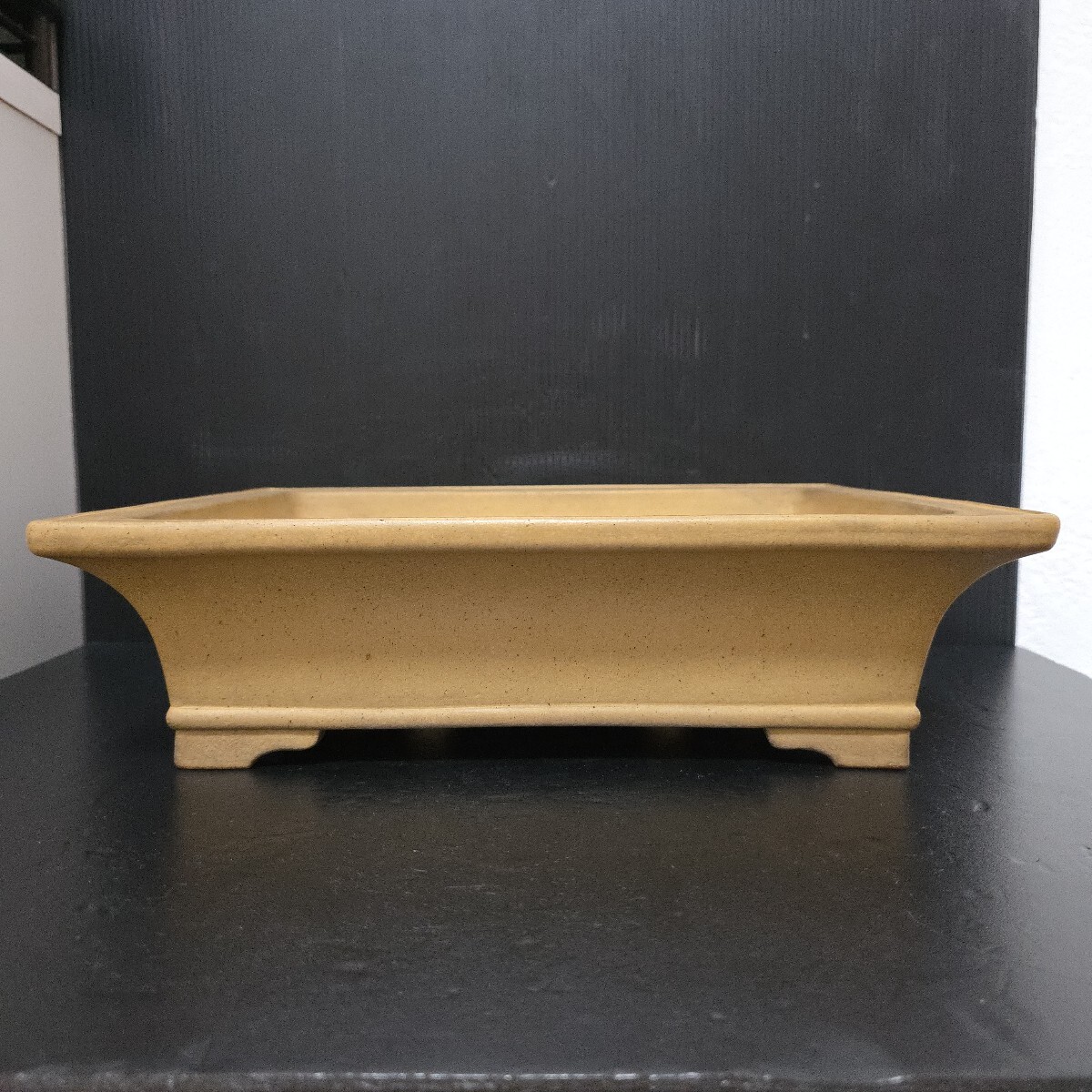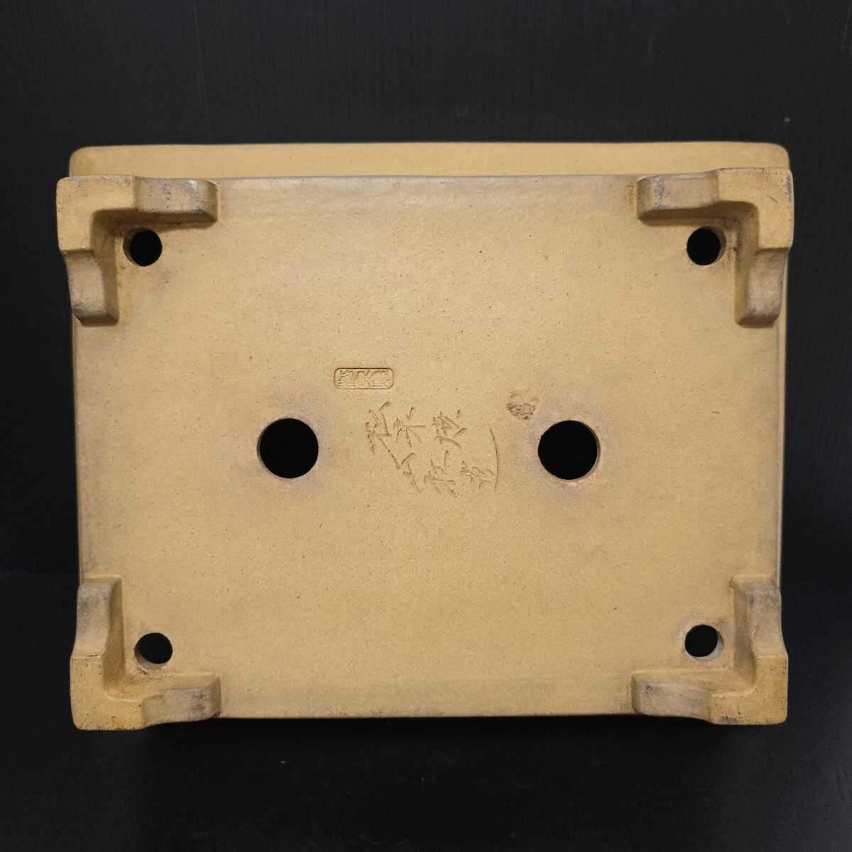 松泉焼 山秋の手作り、白泥外縁下紐段足長方鉢になります。