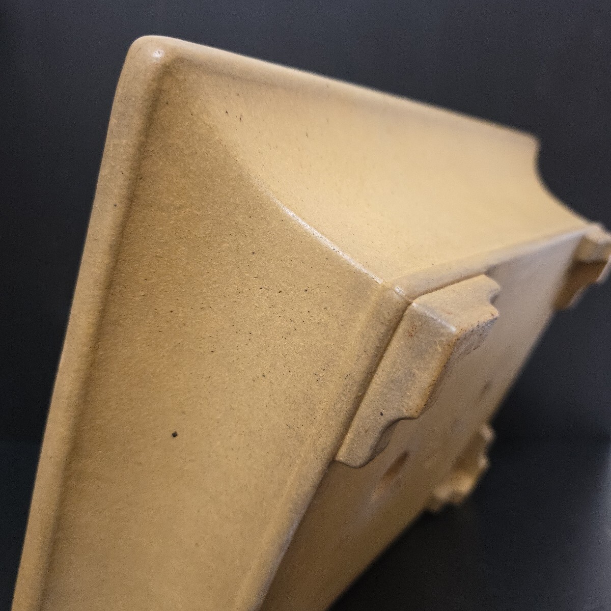山秋手作りの非常に珍しい白泥の極上盆器になります。完璧な作り、型の良さ、時代の良さ、極上な土目、素晴らしい飾りが出来そうです。
